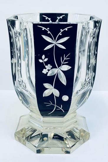 Řezané čiré sklo s černou lazurou, sev. Čechy kol. roku 1930,