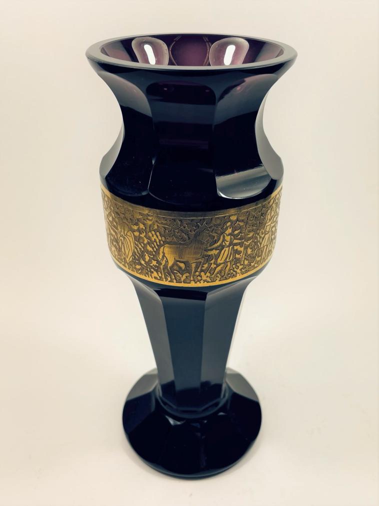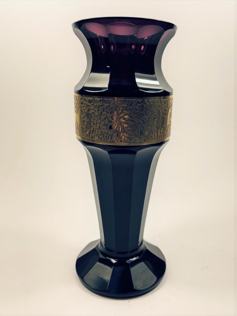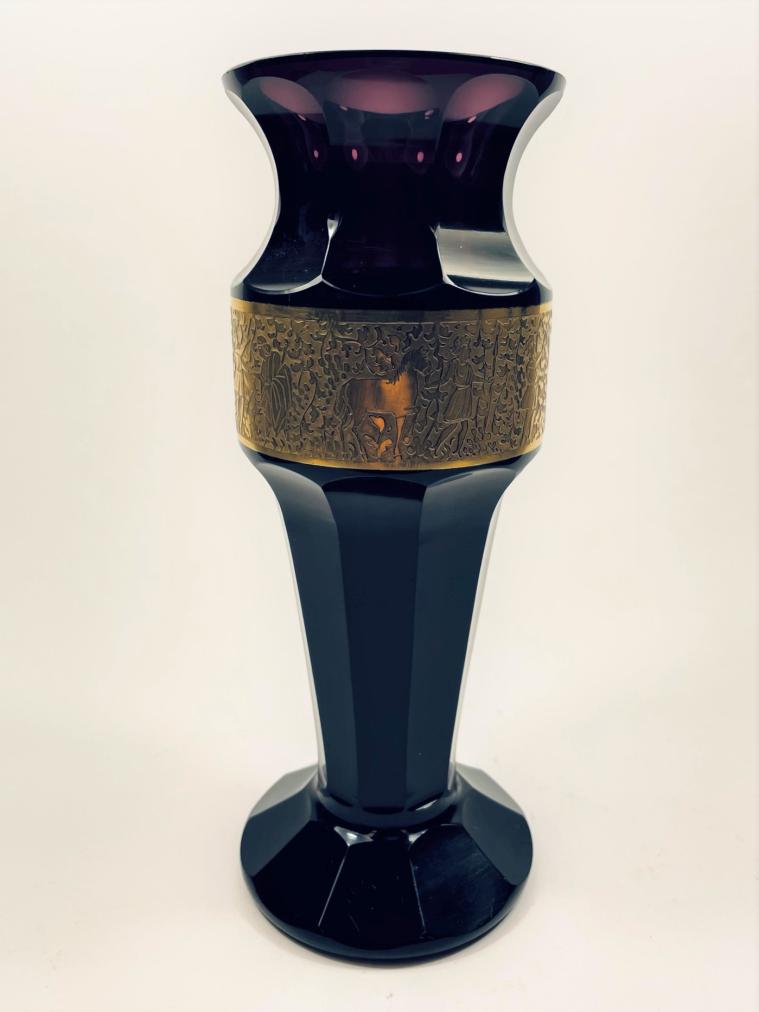 Váza s oroplastikou, fialové - ametystové sklo, kolem roku 1930,