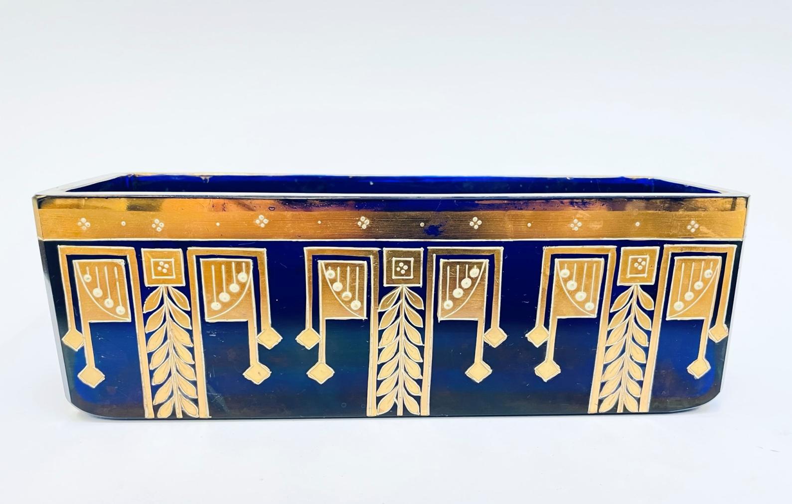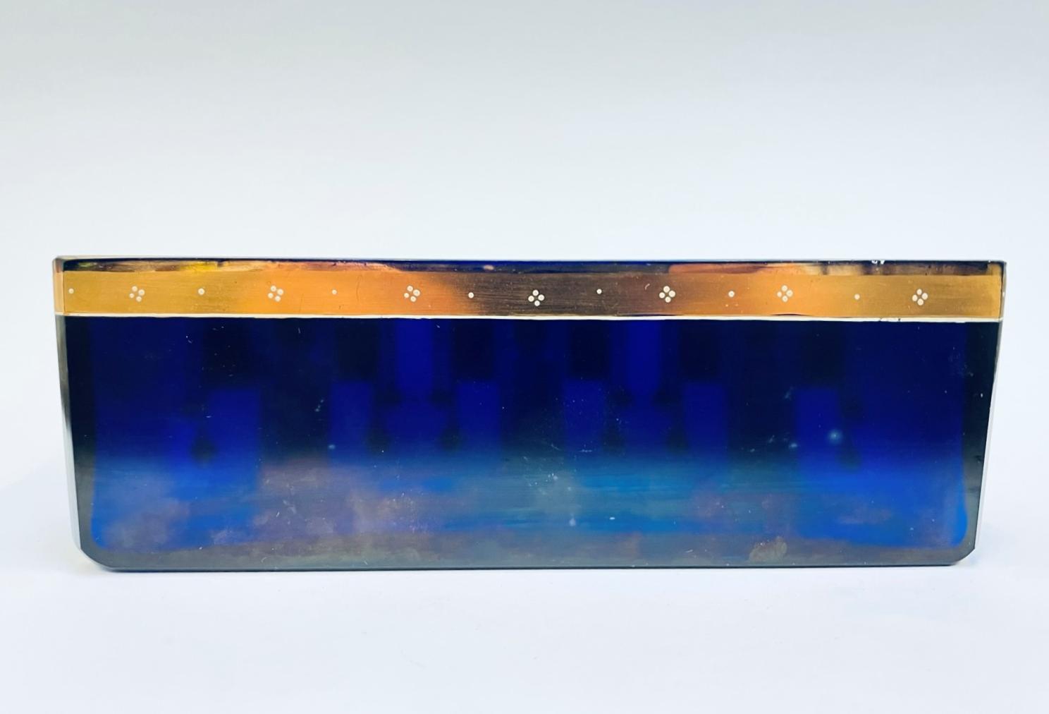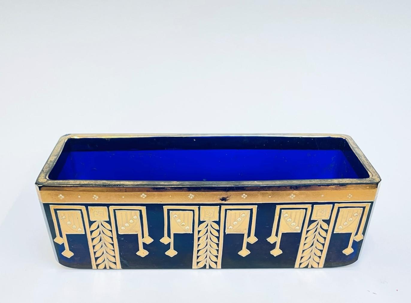 Rozměry 23 x 8 x 7,7 cm, zlacený motiv je na horní hraně opotřeben užíváním - viz. foto, neznačeno . Oťuklý rožek cca 3x3 mm.
