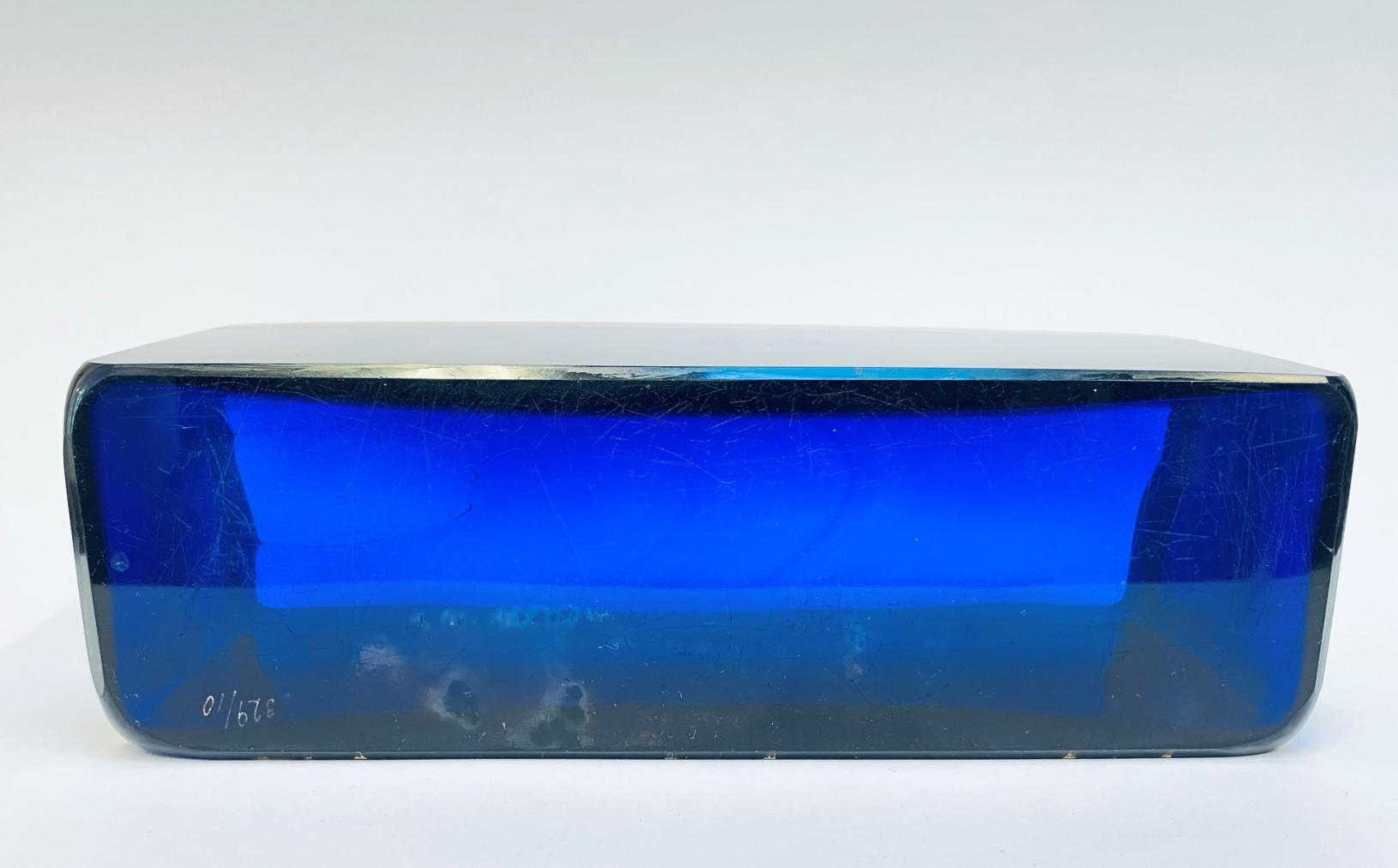 Váza z modrého skla se secesním motivem