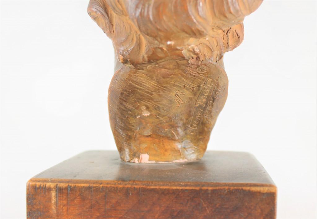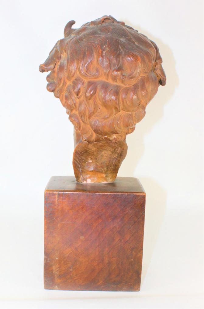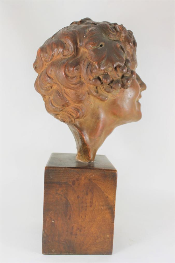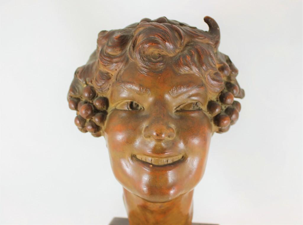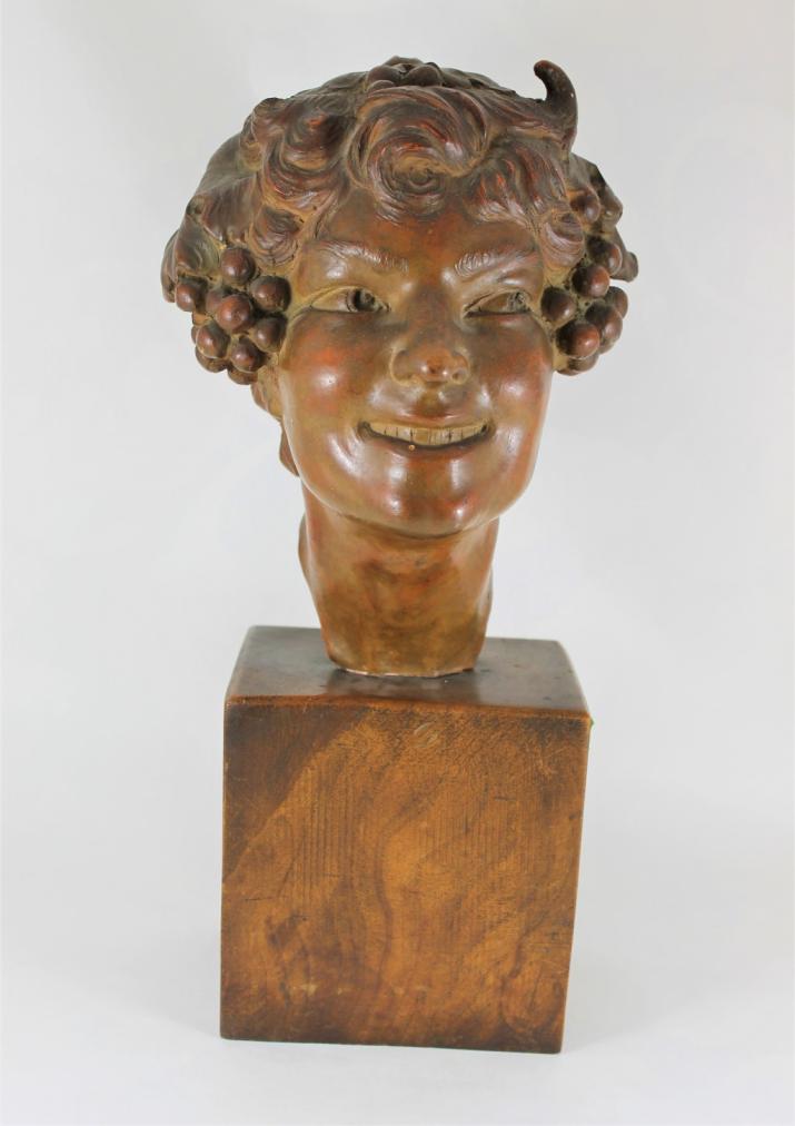 Busta Bacchuse je vysoká včetně soklu 42 cm, samotná busta je vysoká 29 cm. Materiál hlavy -pálená hlína, sokl- dřevo. Chybí jeden růžek, zezadu signováno - nezjištěno, datace 1920.
