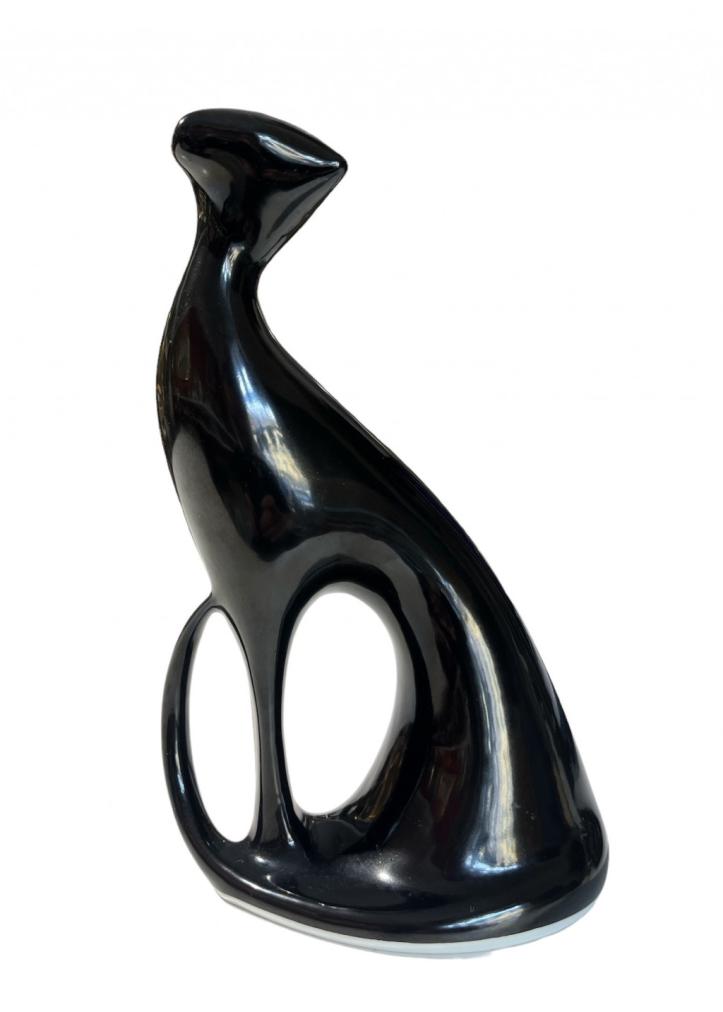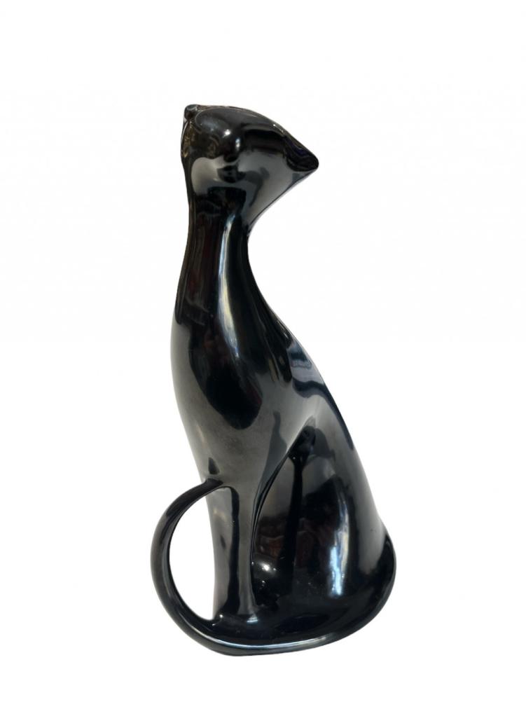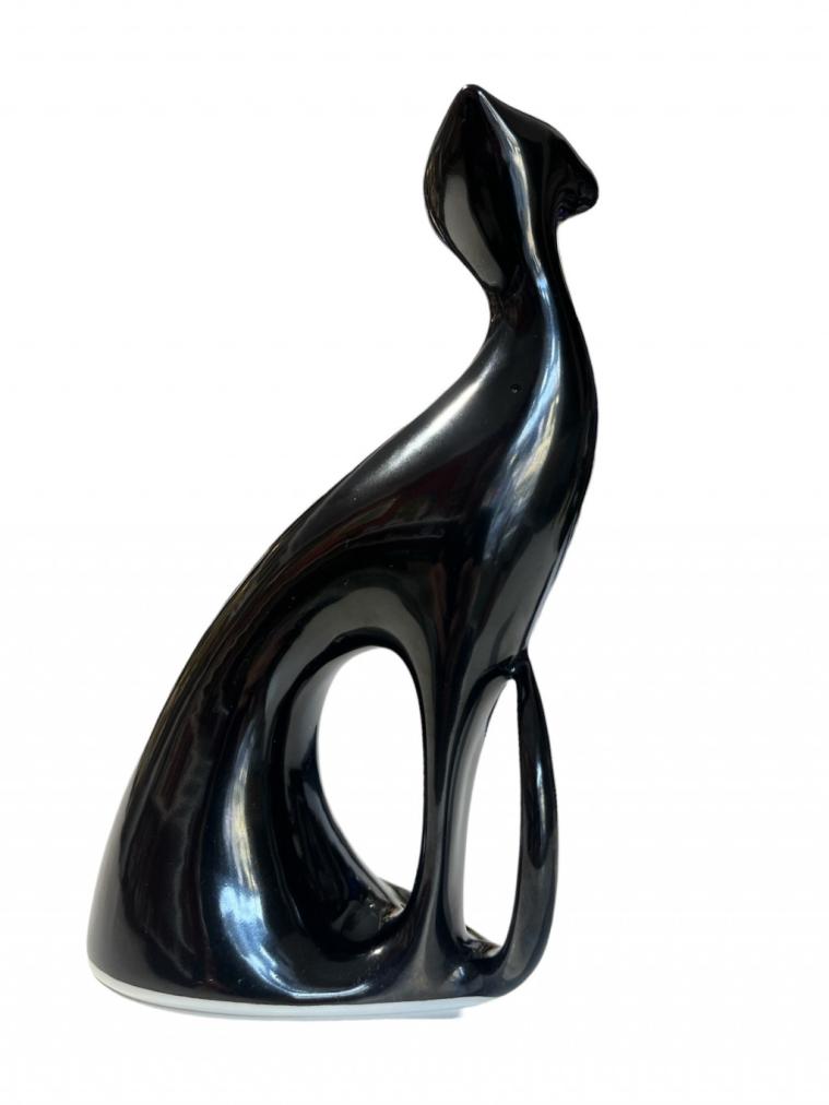 Elegantní černá kočka v nadčasovém stylu Brusel, návrháře Jaroslava Ježka. Výška 19 cm. Značeno ze spodní strany razítkem na glazuře a vyrytými číslicemi.