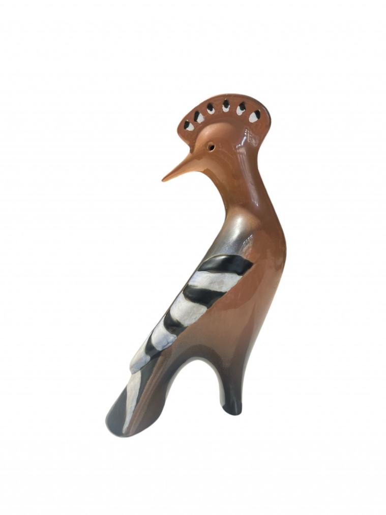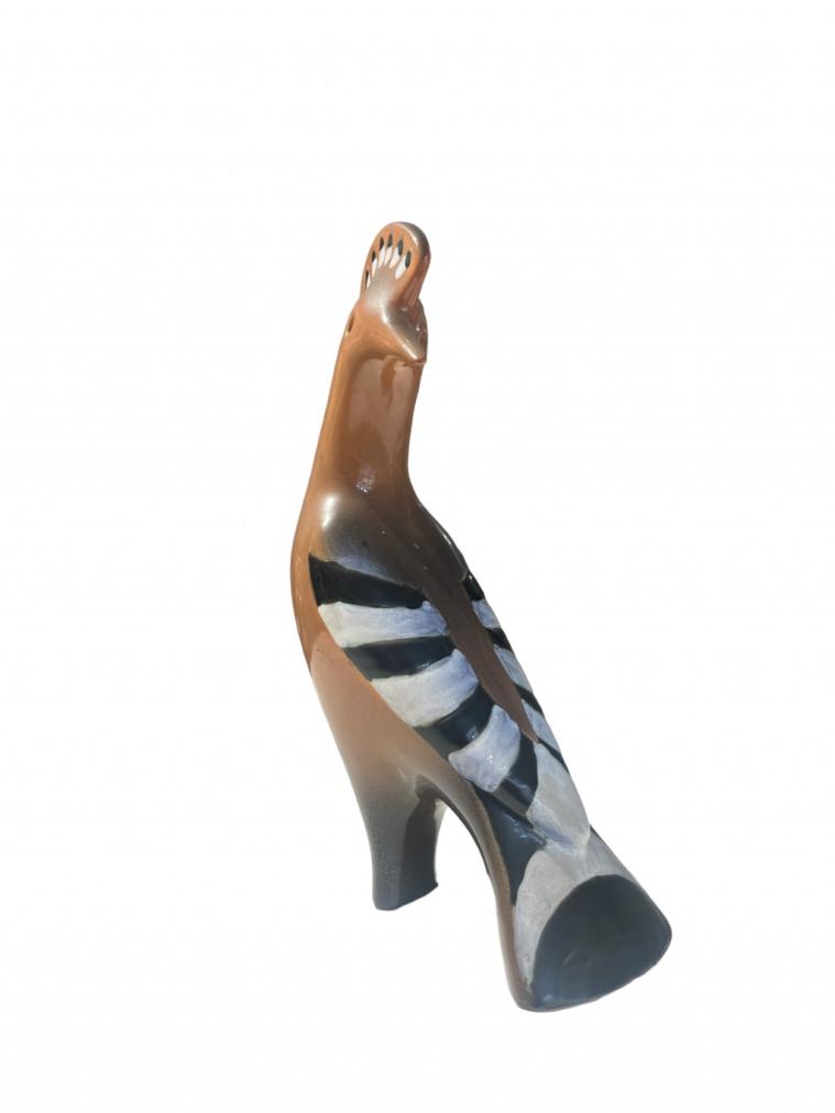 Tento krásný Art Deco keramický Dudek chocholatý, barevně věrný originálu, je vyrobený v Keramia Znojmo. Na výšku měří 28 cm. S malým oťukem na přední straně nožky. Značeno ze spodní strany Keramia, 1458, Made in Czechoslovakia.