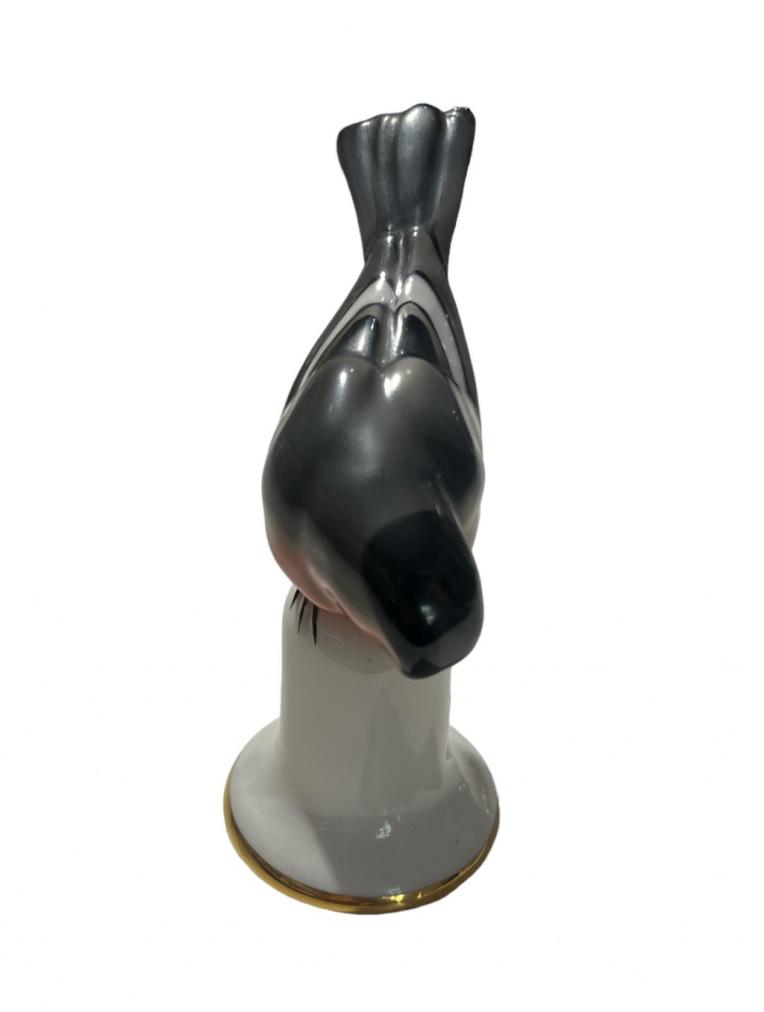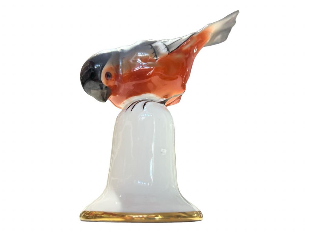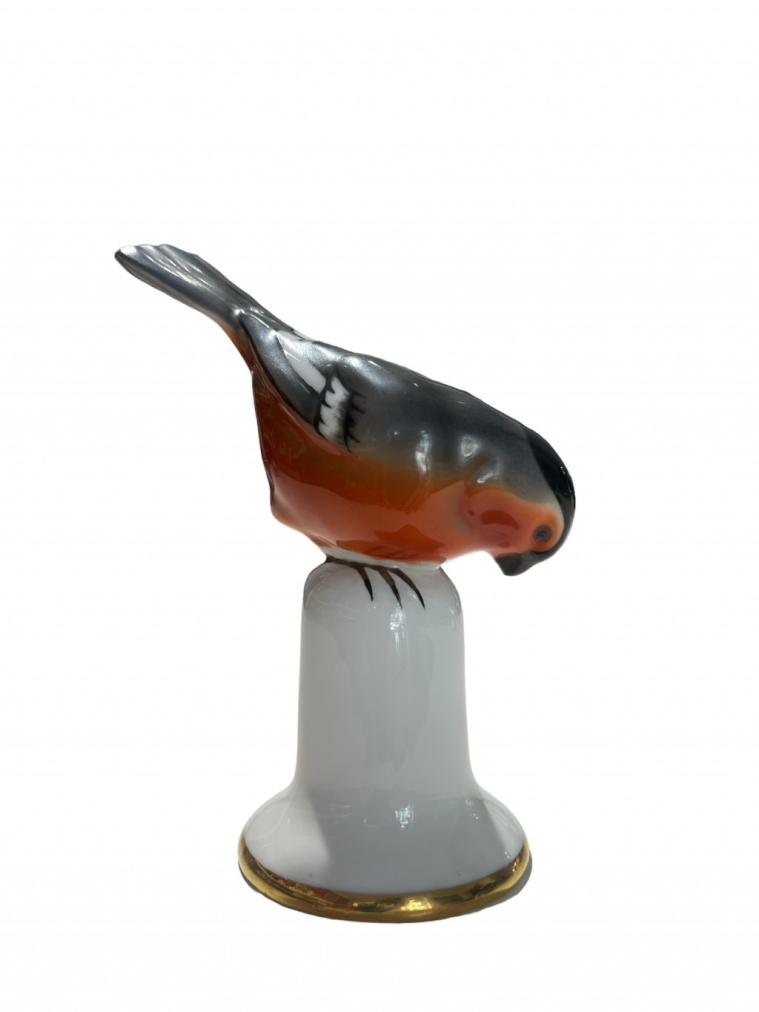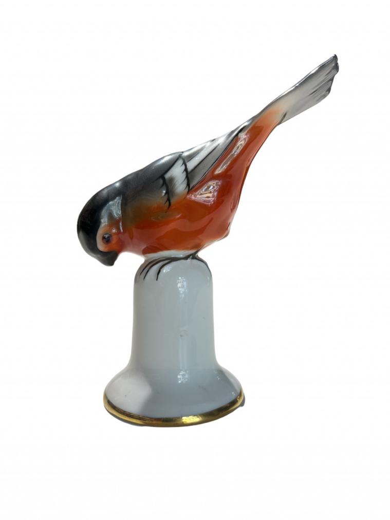 Roztomilá starožitná soška drobného ptáčka Hýla obecného z německé porcelánky Galluba & Hoffmann. Ptáček je červeně zbarvený s černou hlavou a černošedými křídly s bílými pruhy. Výška12 cm, podstavec 5,5 cm. Značeno na spodní straně dole razítkem GH v erbu s korunkou- Galluba & Hoffmann. Perfektní stav.
