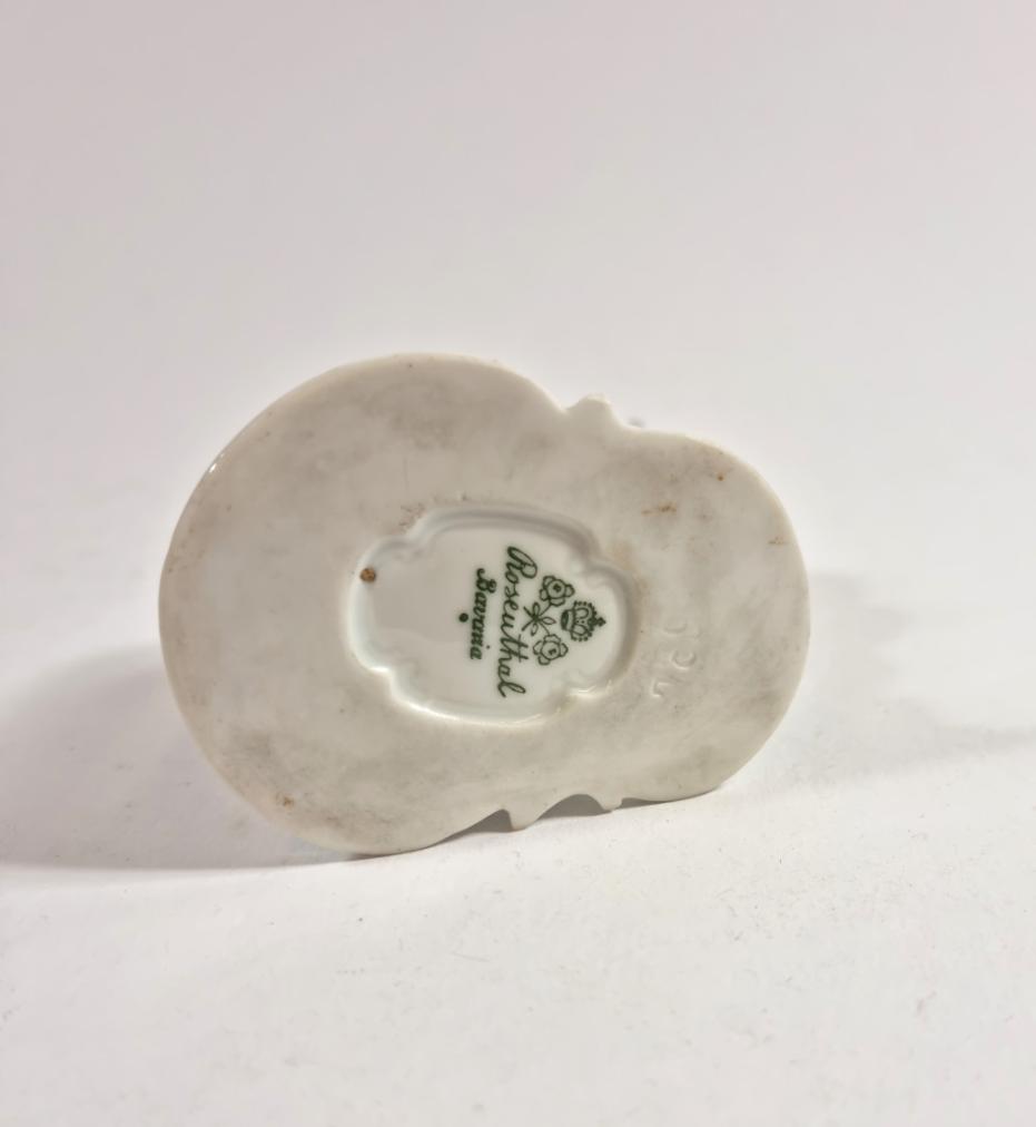 Porcelánová soška kavalíra sedícího na podstavci hledícího vpřed. Povrch lesklý. Značeno zespodu "Rosenthal" (viz foto). Šířka 6,5 cm. Výška 8,5 cm. Soška je ve velmi dobrém stavu.