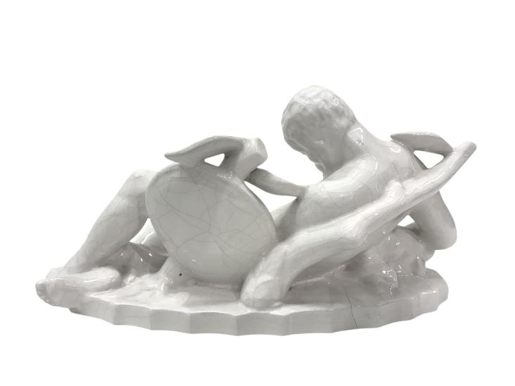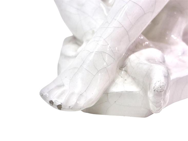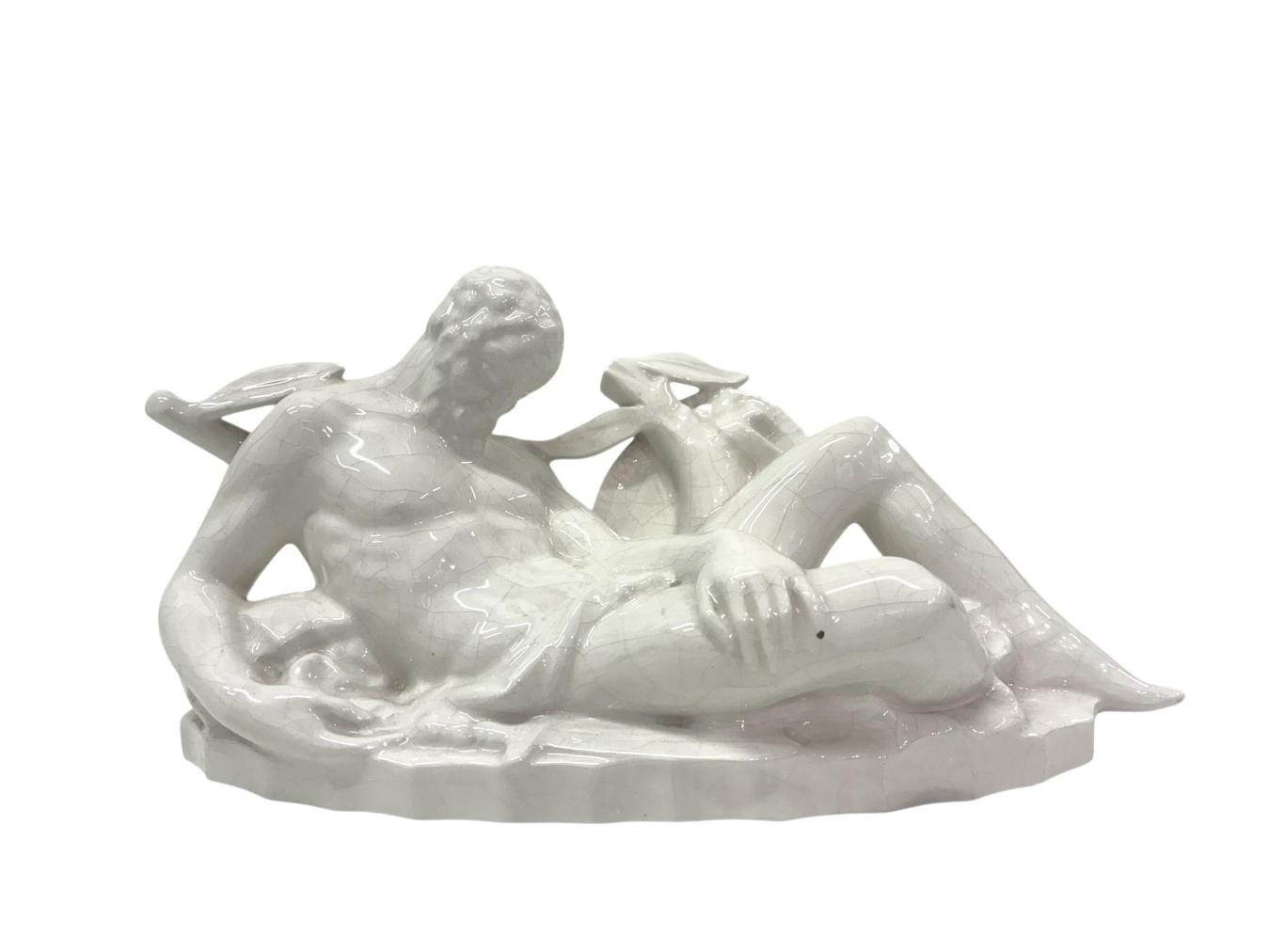 Porcelánová socha ležícího muže z dílen Huberta Kovaříka - Svitávka. Muž je zapřen o velké větve stromu a je ve zkleslé poloze. Po své pravé ruce mu leží meč. Můž ma drobně odřenou levou ruku a levý malíček. Zespod se nachází značka Svitávka a sériové číslo. Socha má v nejvyšším bodě 13 cm a délka podstavce 25 cm.