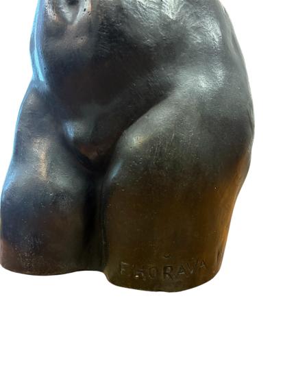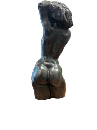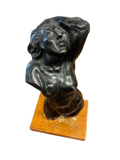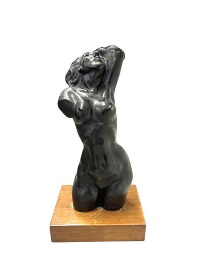 Socha na dřevěném podstavci z litiny od akademického sochaře Františka Hořavy. Socha má typický Hořavův rukopis, tělo je krásně hladké, téměř dokonalé v protažené pozici, kdy si žena sahá do vlasů a v nich se ztrácí její ruka. Socha je signovaná na levé noze F. Hořava. Socha bez podstavce má 42 cm na výšku a s podstavcem má 48 cm. Podtavec je široký 24 cm a do hloubky má 17,5 cm.