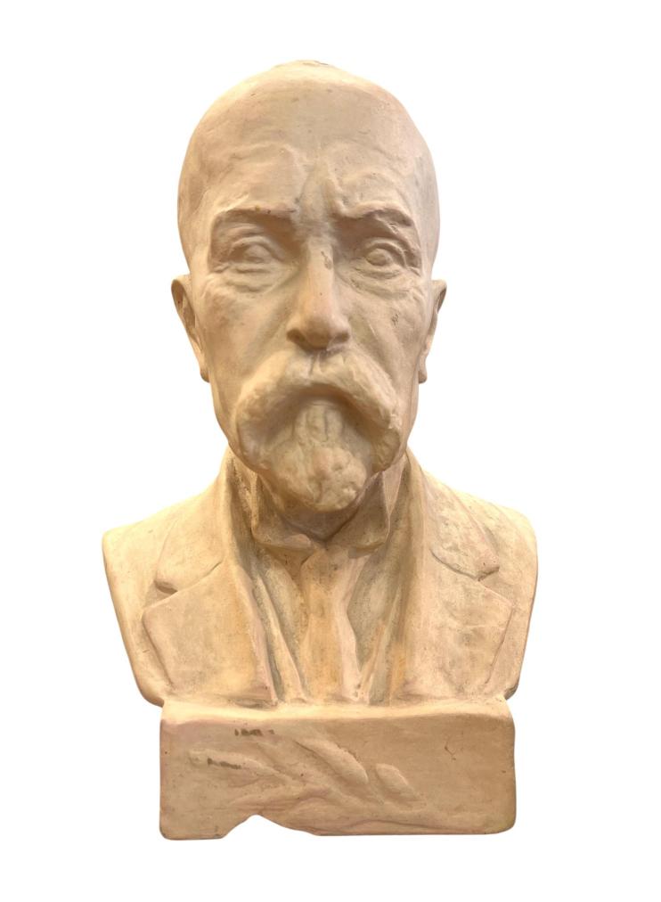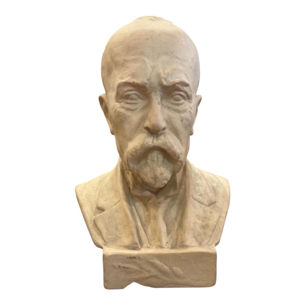 Busta jednoho z nejvýznamnějších českých státníků T. G. Masaryka. Materiál- pálená hlína, výška 34 cm, v nejširším bodě 25 cm. Signováno Jos. Paša. Na spodní straně je soklík uštípnutý, lze vidět na čelním pohledu.