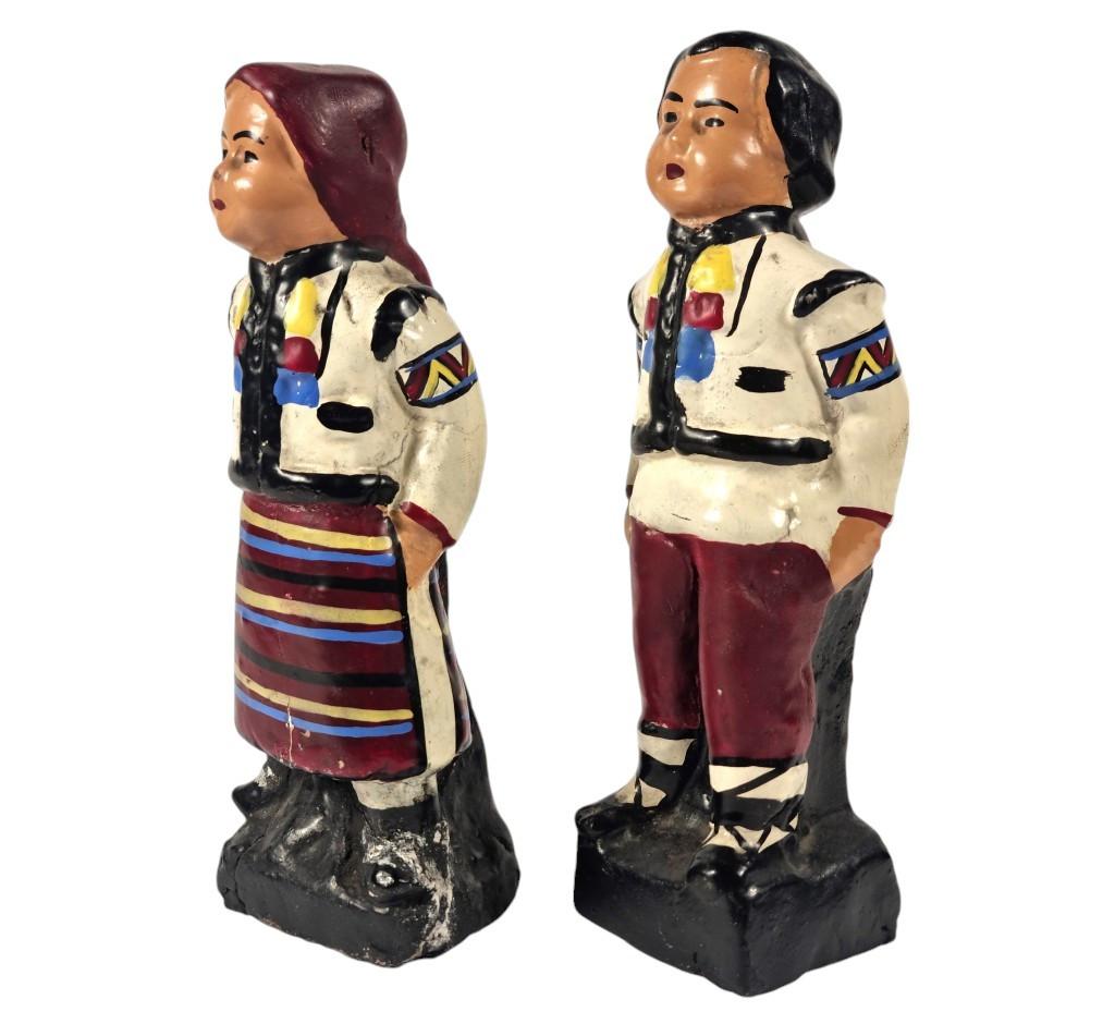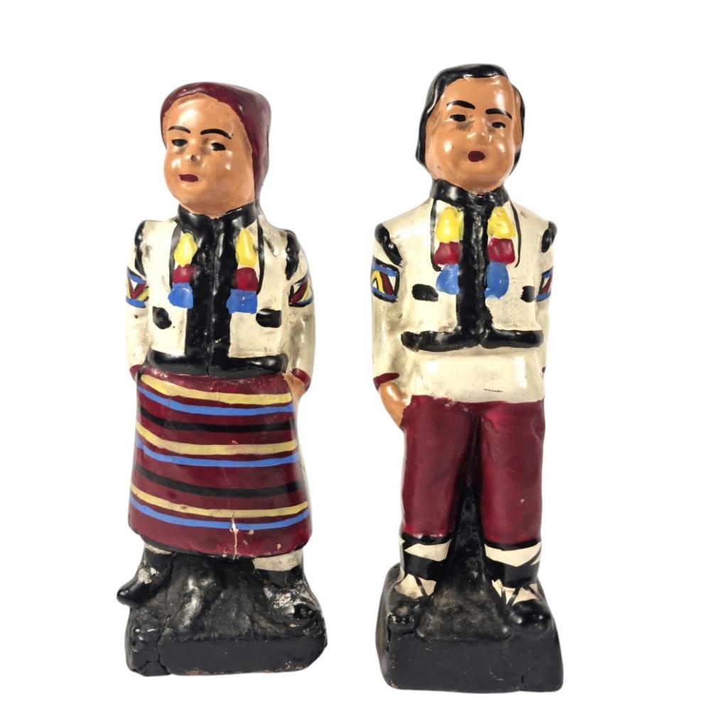Keramické sošky jsou vysoké 17 cm. Soška ženy je neodborně opravena ve spodní části.