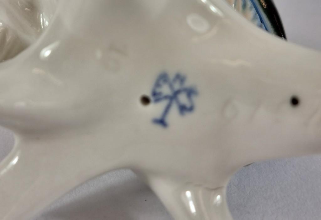 Porcelánová soška o rozměrech: výška 13 cm, šířka 8 cm. Značeno ze spodní strany ENS. Bez poškození.