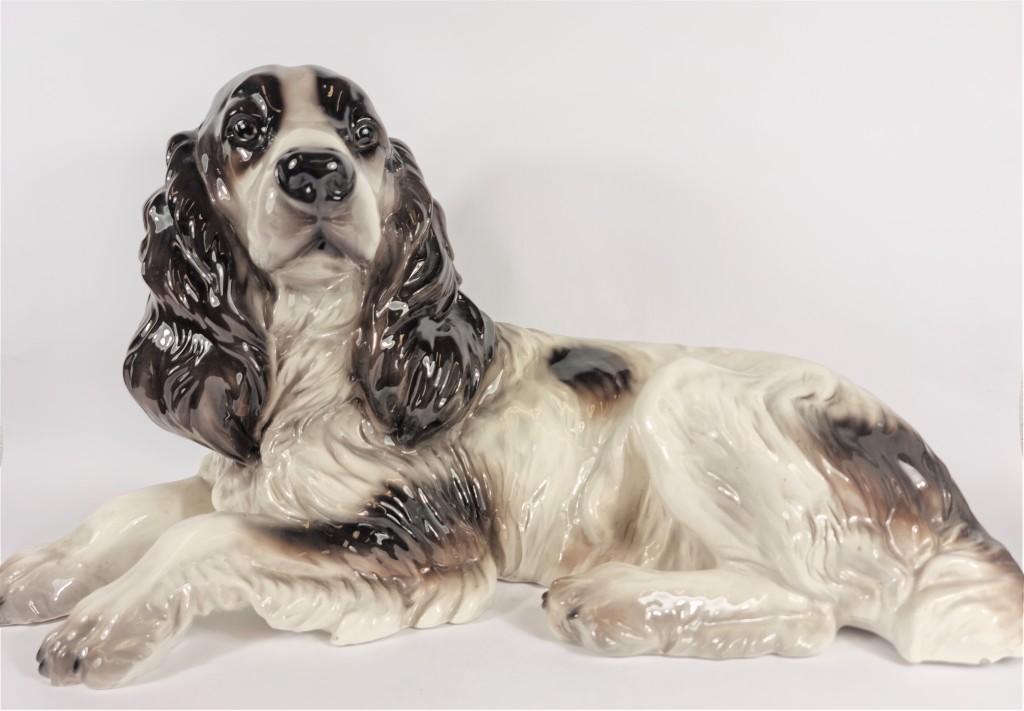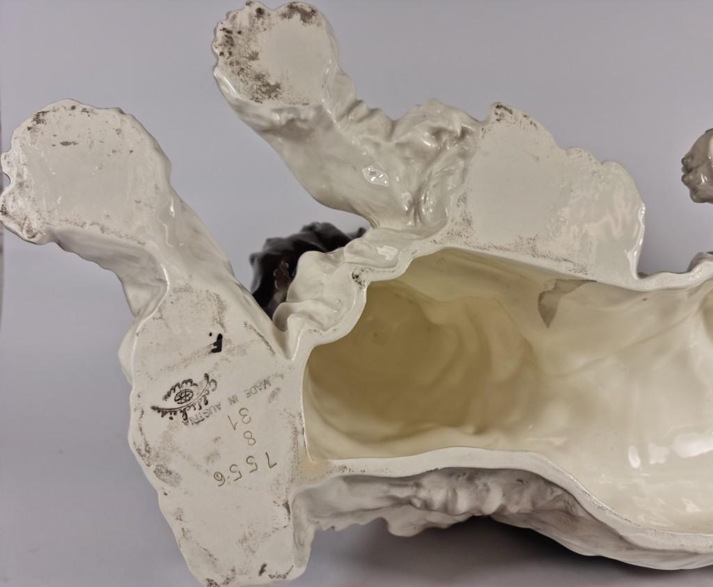 Porcelánová soška o rozměrech: výška 25 cm, šířka 42 cm. Značeno na spodní straně Goldscheider. Bez poškození.