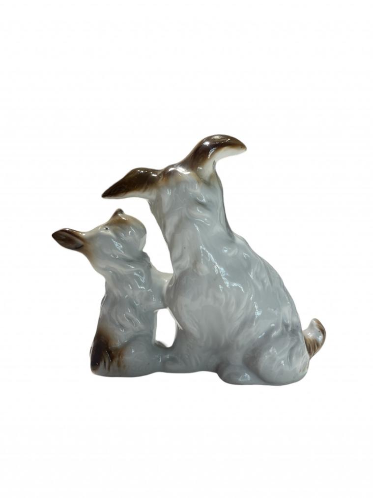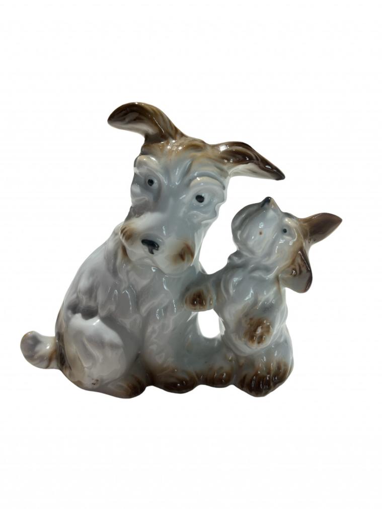 Roztomilá porcelánová soška dvou psíků, dospělého se štěnětem. Výška 10 cm. Ve skvělém stavu, neznačeno.