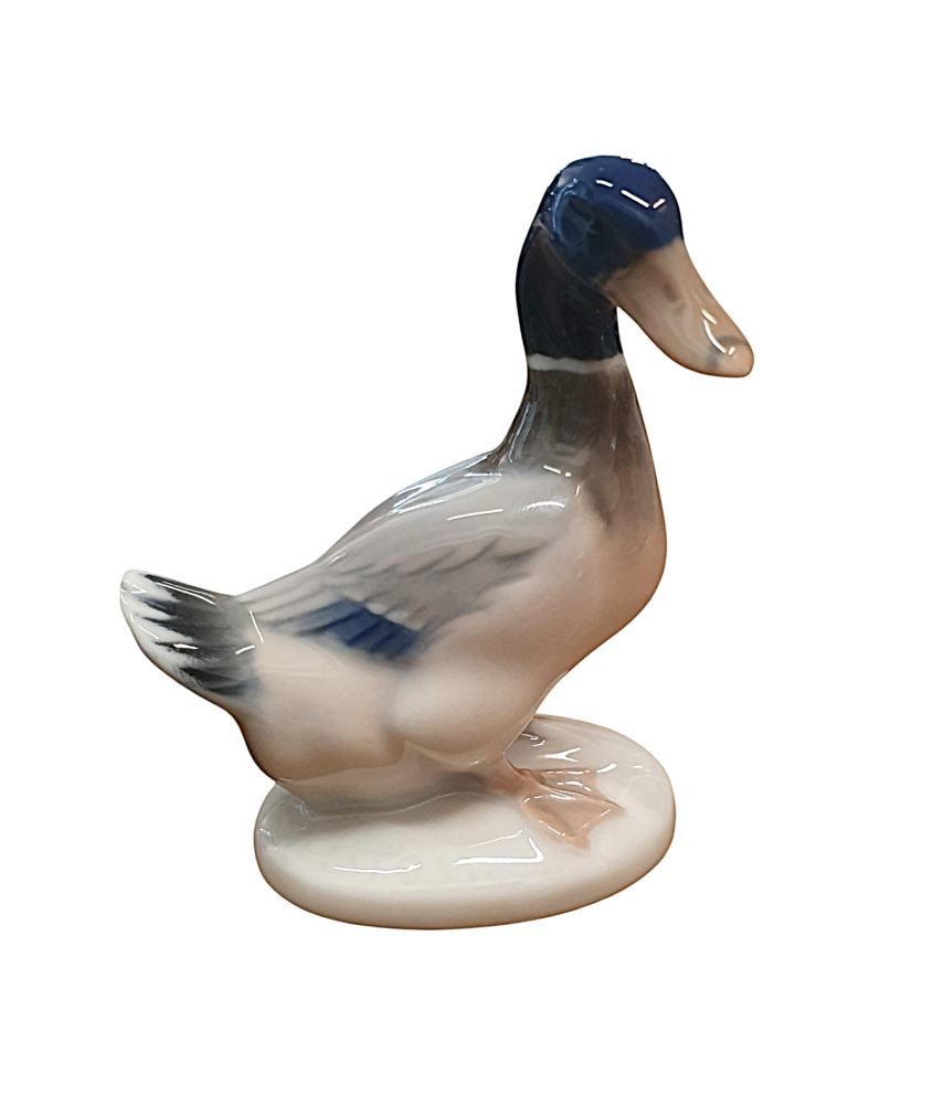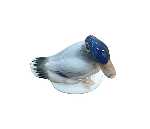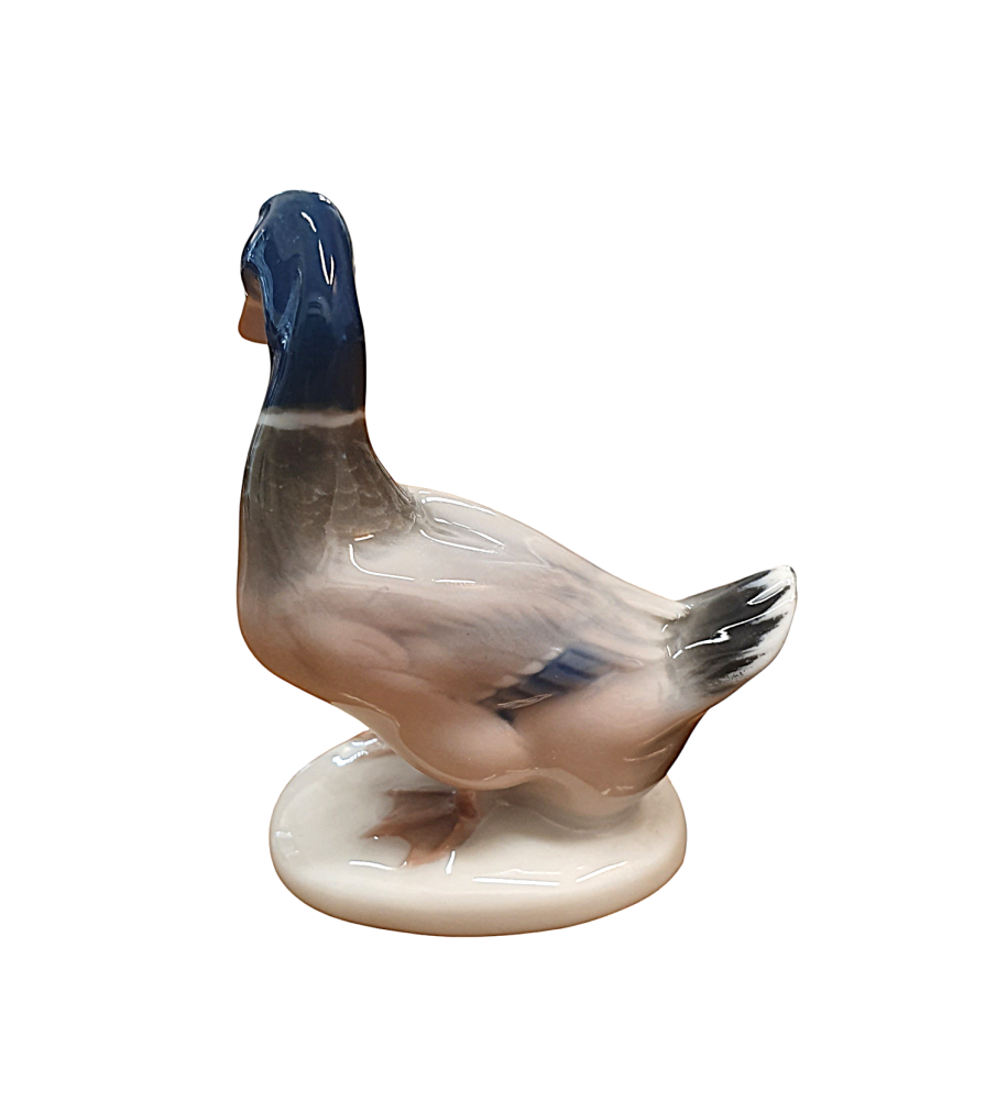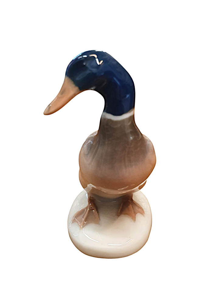 Krásná drobná soška kačera z porcelánu od značky Rosenthal. Kačer působí jako živý, povrch zdobí realistická malba peří, zobáku i nožek. Výška 6,5 cm, podstava, 4,2 x 3 cm, v nejširším bodě 5,5 cm. Značeno vespod - Rosenthal. Perfektní stav.