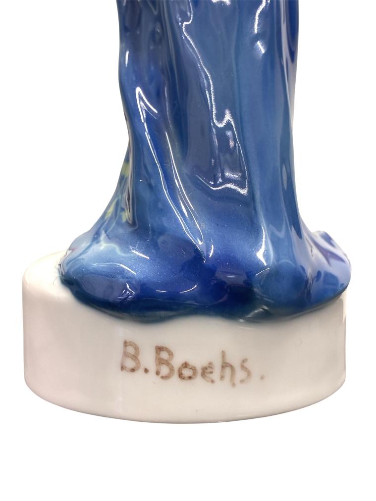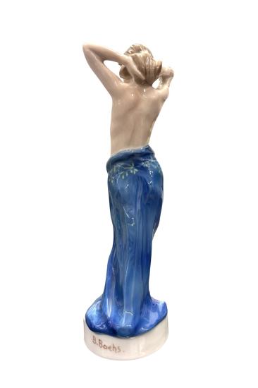 Porcelánová soška ženy, která má odhalenou vrchní část těla a ruce má dané za hlavou. Žena má tělo v protažení a spodní část ji zakrývá modrý šál se zelenými florálními motivy. Na podstavci je signatura německého umělce, především sochaře, B. Boehs. Vespod se nachází značka porcelánové firmy Rosenthal a seriové číslo. Na sošce se nenachází žádné známky poškození. Soška má na výšku 22 cm a podstavec má průměr 6,5 cm.
