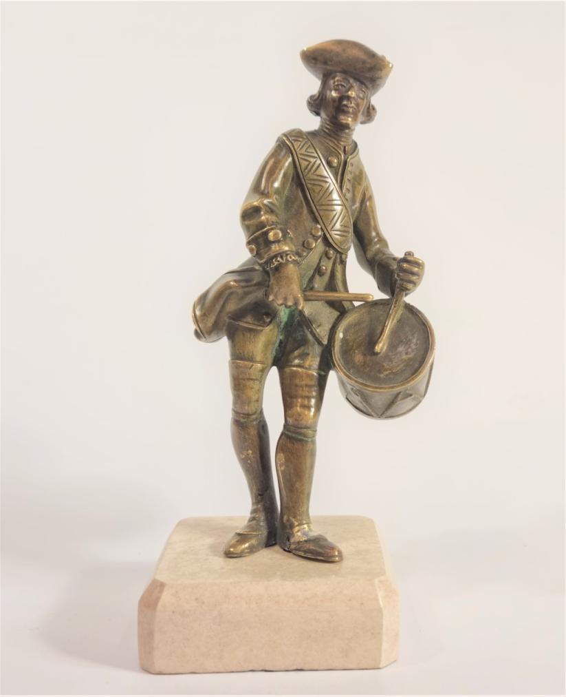 Bronzová plastika vojenského bubeníka, originál z 19. století,