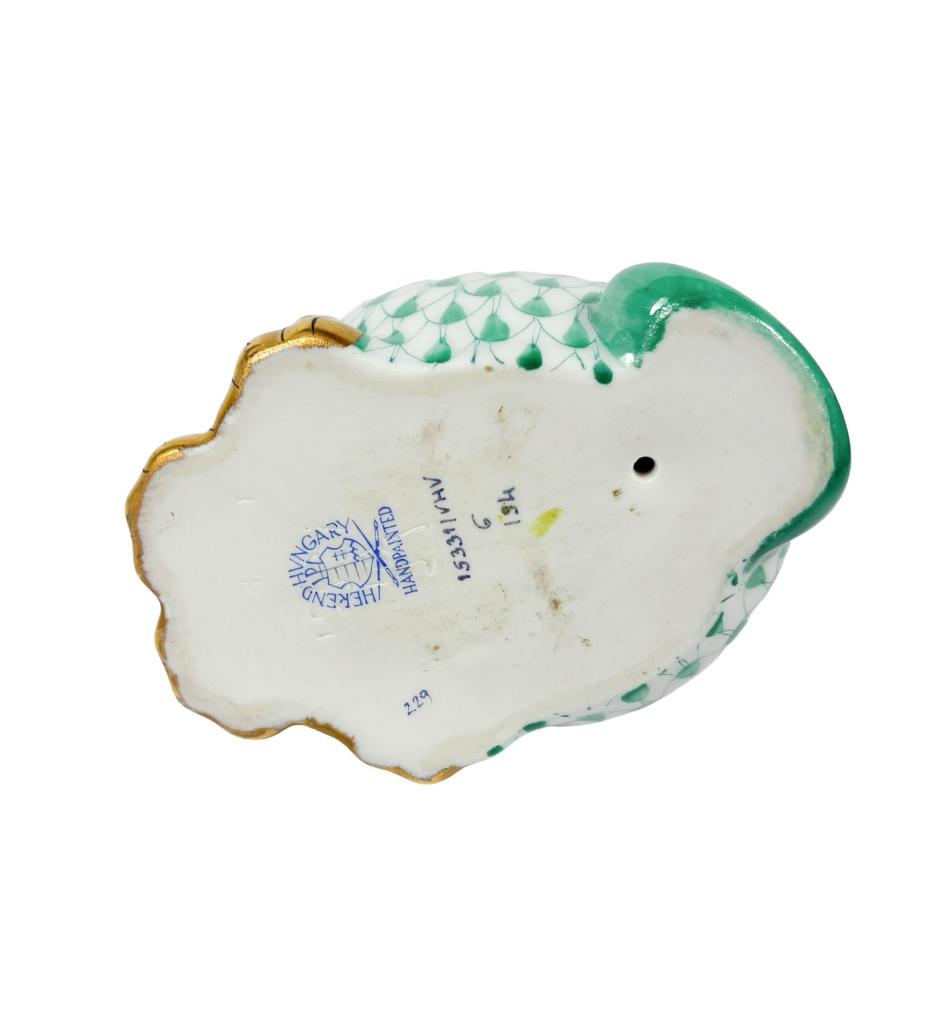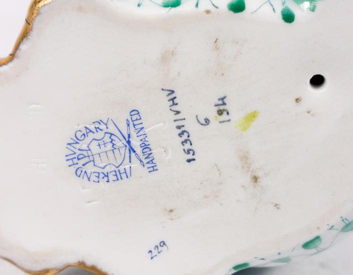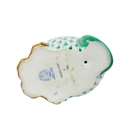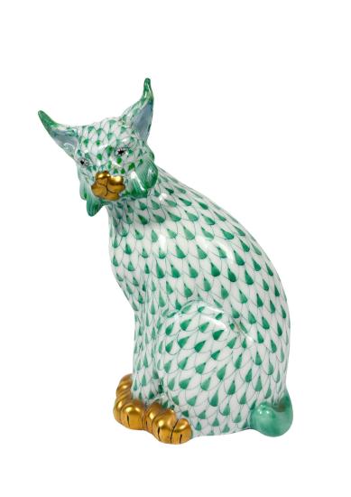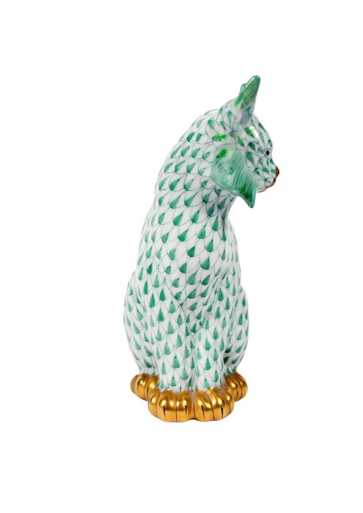 Porcelánová soška rysa v zeleno-zlatých odstínech. Výška 13 cm, v nejširším bodě 8 cm. Značeno vespod "Herend Hungary, handpainted" perfektní stav, bez poškození.