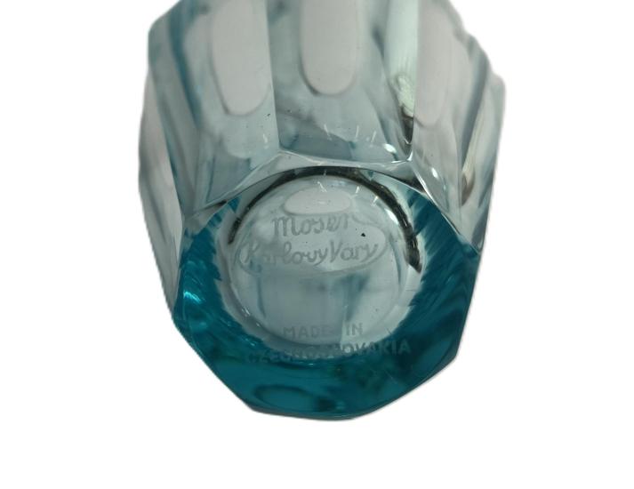 Krásná jednoduchá vázička od firmy Moser v jemně modrém odstínu. Výška 15 cm, průměr 6,5 cm, průměr podstavy 4 cm. Bez oťuků, skvělý stav. Značeno vespod - Moser Karlovy Vary.