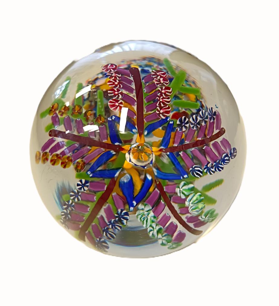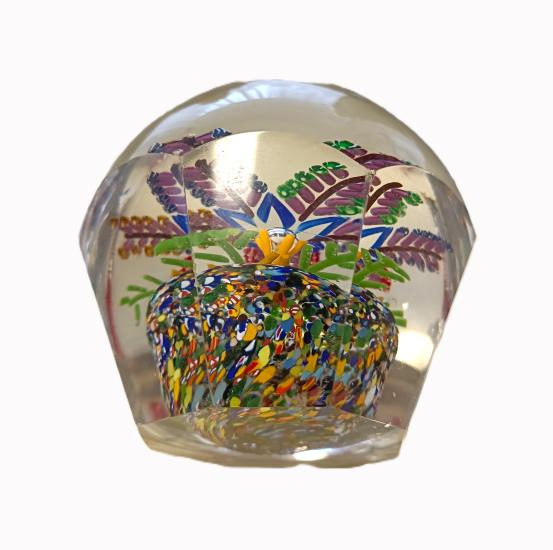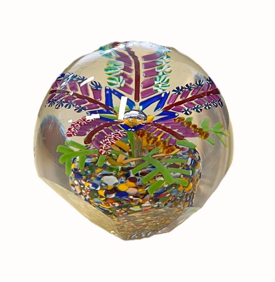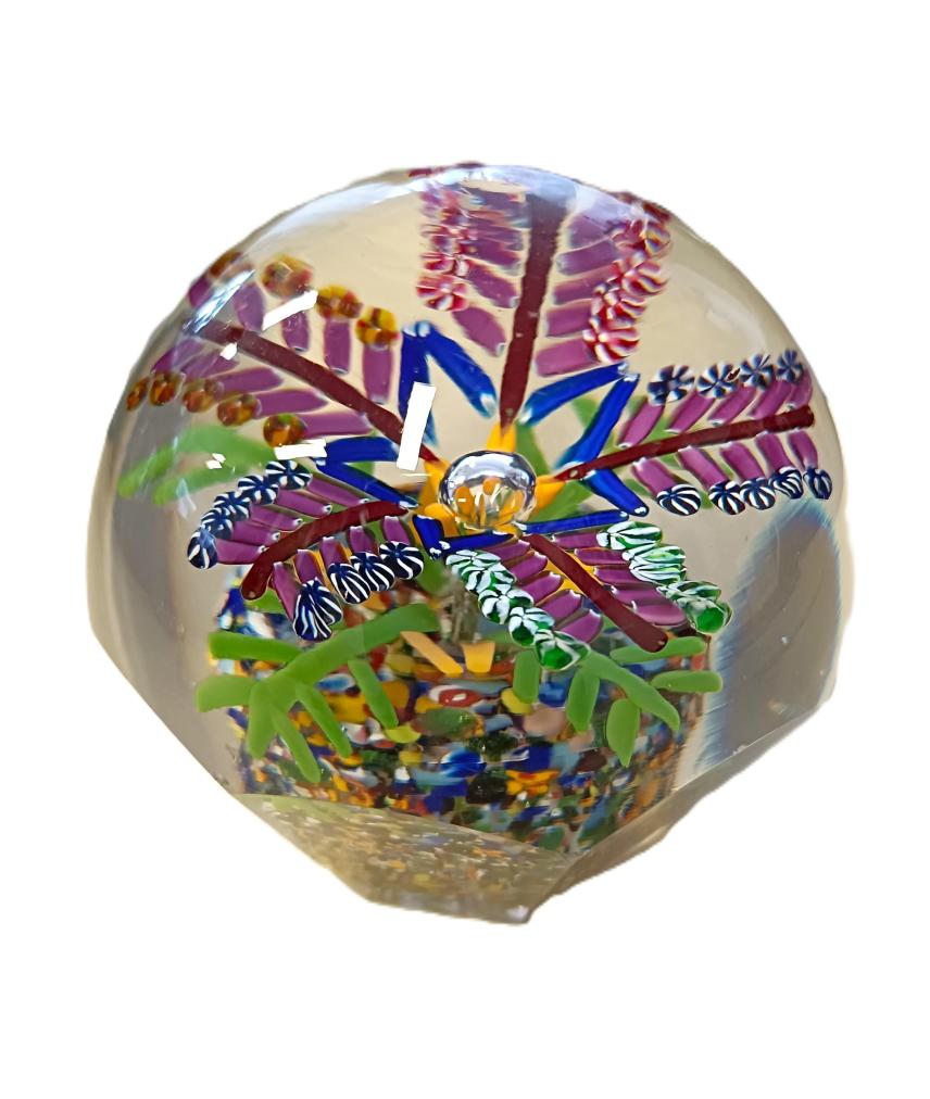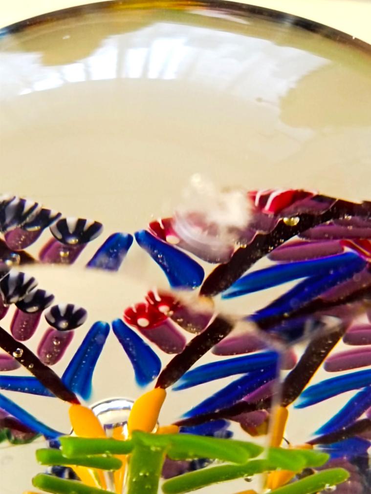 Krásně skleněné těžítko s květinou. Rozměry: 8 x 9cm na podstavci o šířce 5 cm. Těžítko má dva oťuky, viz foto.