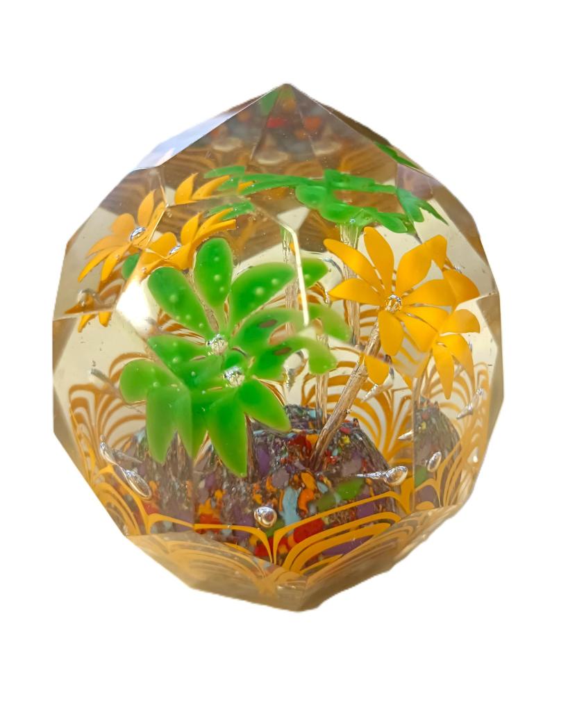 Skleněné těžítko s květy