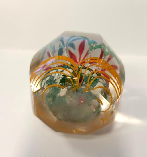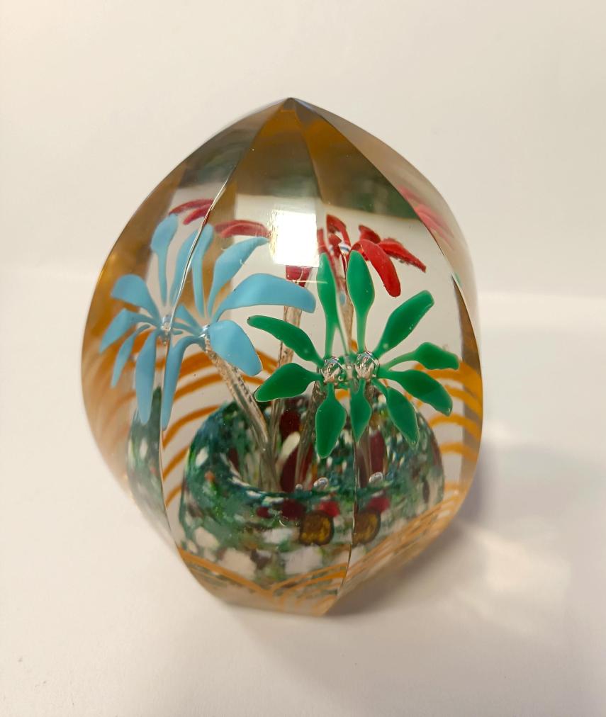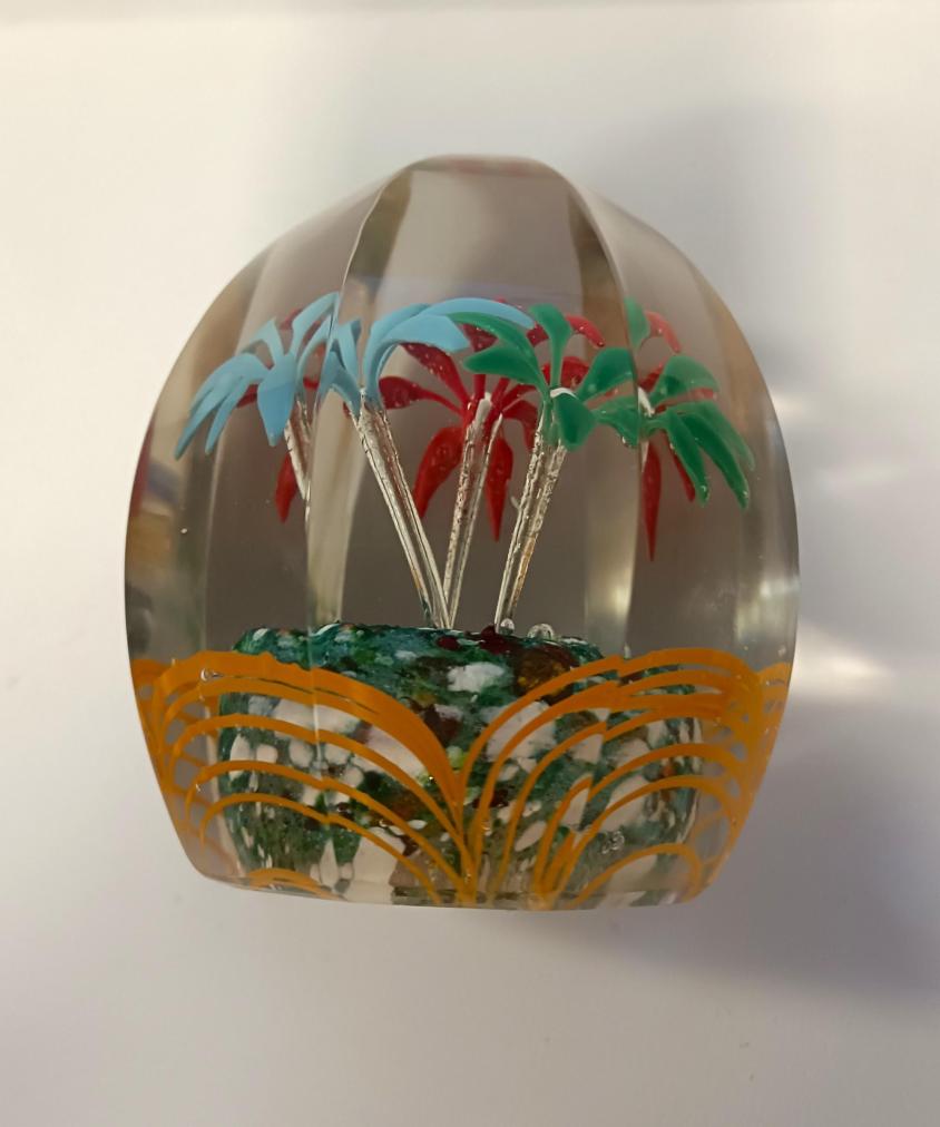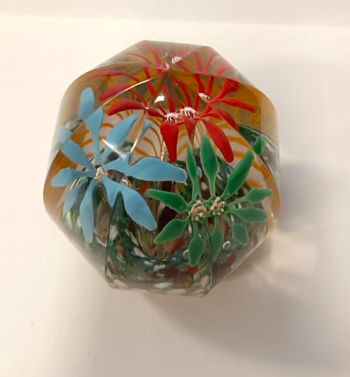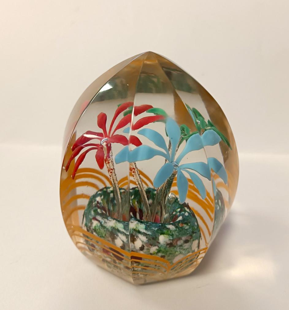 Krásné staré skleněné těžítko s květinami. Rozměry: 10 x 7 cm na podstavci o šířce 5,5 cm. Těžítko je bez poškození.