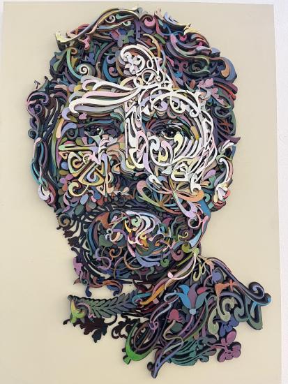 Dílo od Ivany Štenclové. Rozměry: 70 x 50 cm, 2026. Akryl na překližce, laser cut.