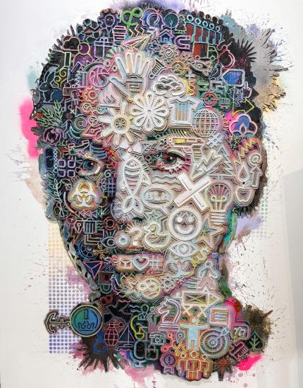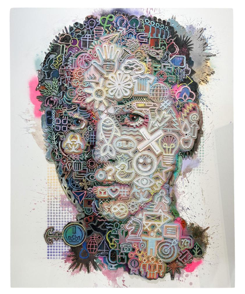 Rozměry díla 150 x 120 cm. Akryl, karton, překližka. Laser cut. Rok vzniku 2025.