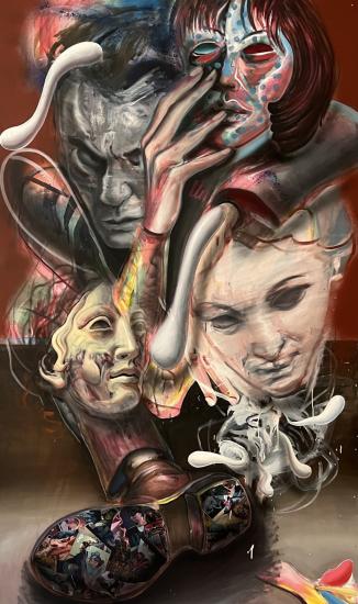 Akryl, koláž a olej na plátně, 170x100 cm. Toto dílo bylo vystaveno v Lyonu a v Paříži a bude také součástí výstavy La Muse de Paris v Galerii Graciano.