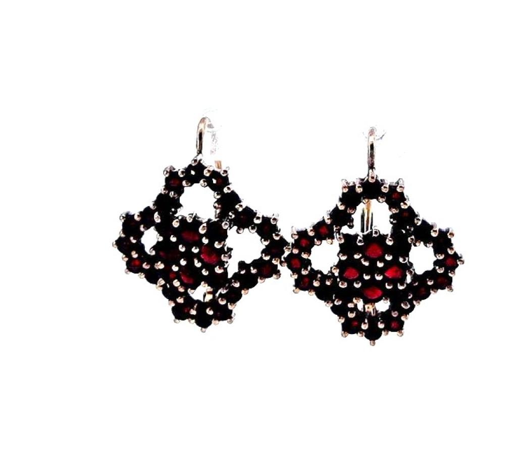 Pozlacené stříbrné náušnice s českými granáty, visací