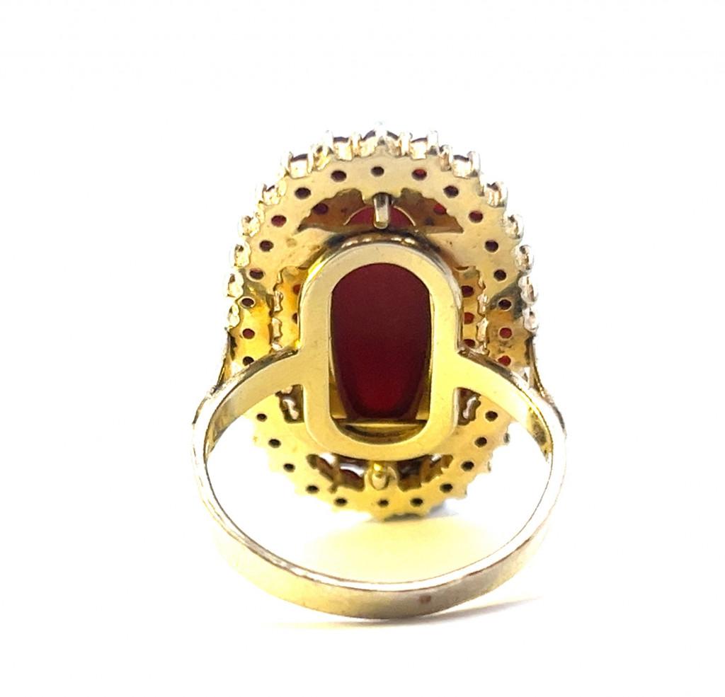 Pozlacený stříbrný prsten s českými granáty a karneolem, vel. 54