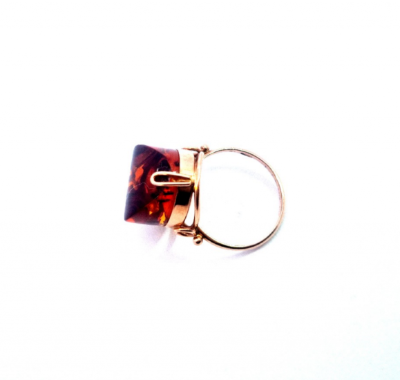 Prsten z růžového zlata s velkým jantarem, vel. 56