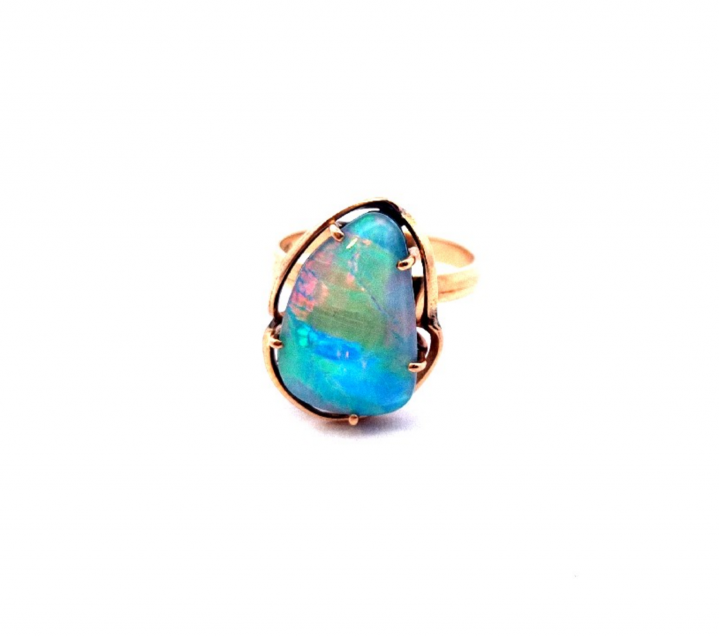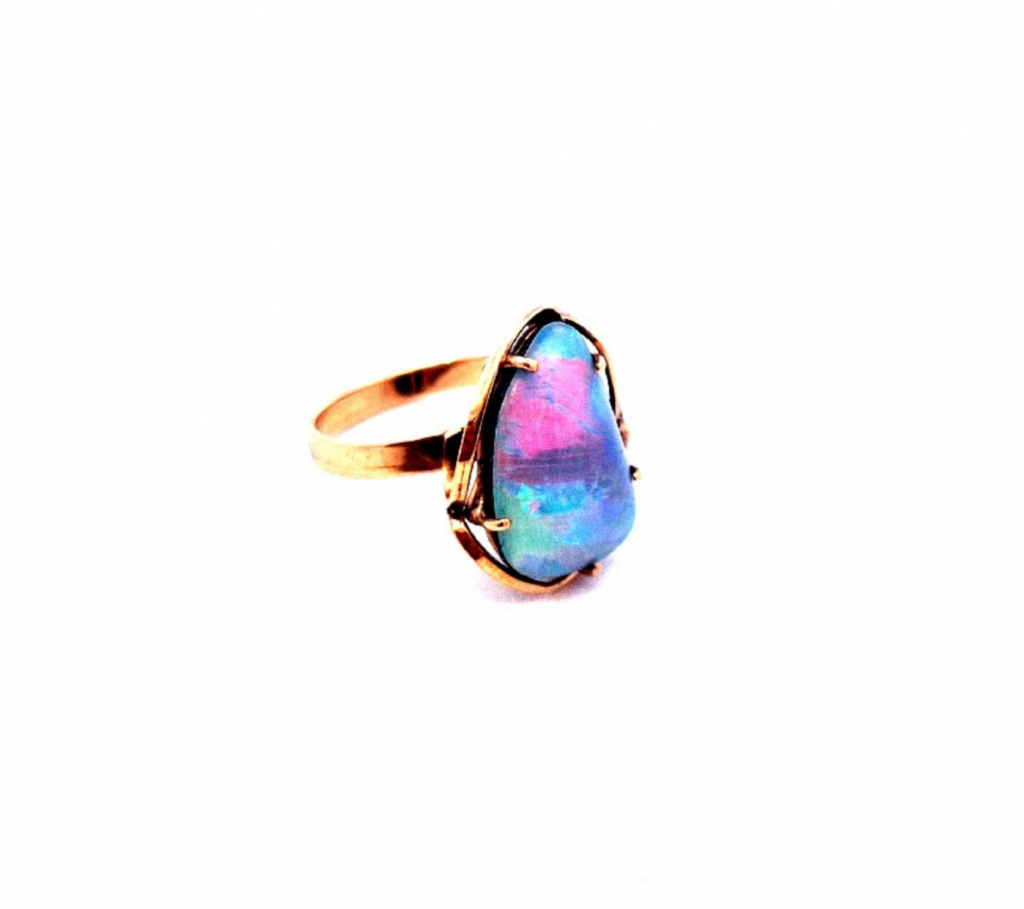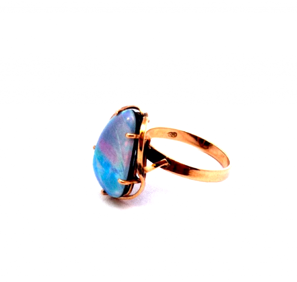 Prsten ze žlutého zlata s krásným australským opálem, vel. 52