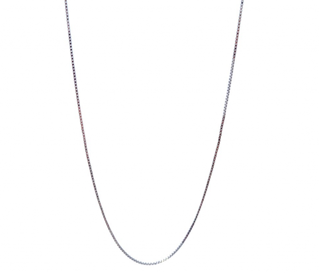 Řetízek z bílého zlata o ryzosti 585/1000, punc labuť. Váha 0,78 g, délka 46,5 cm, šířka 0,5 mm.
