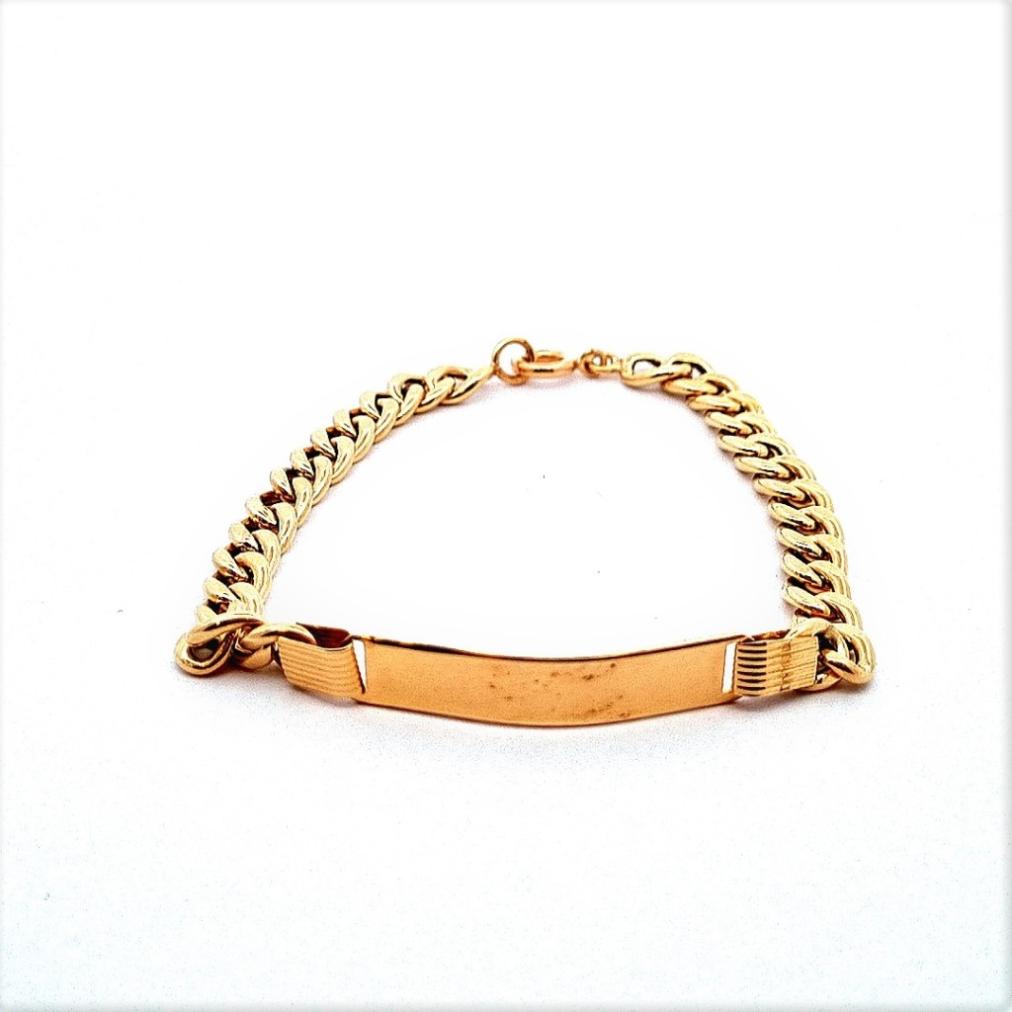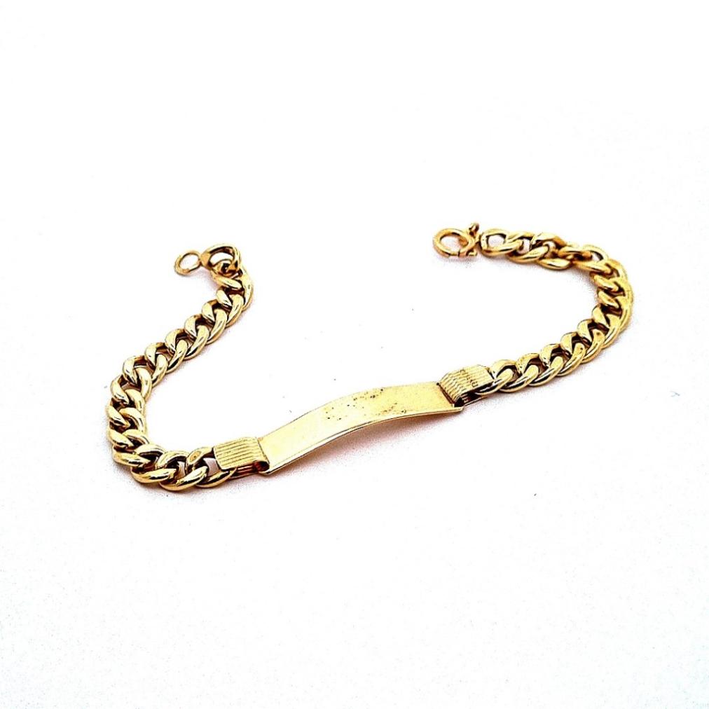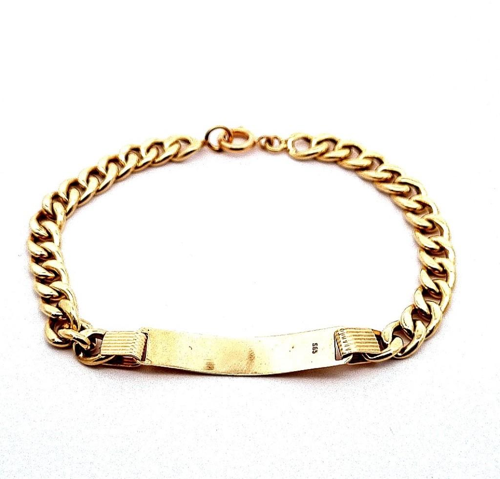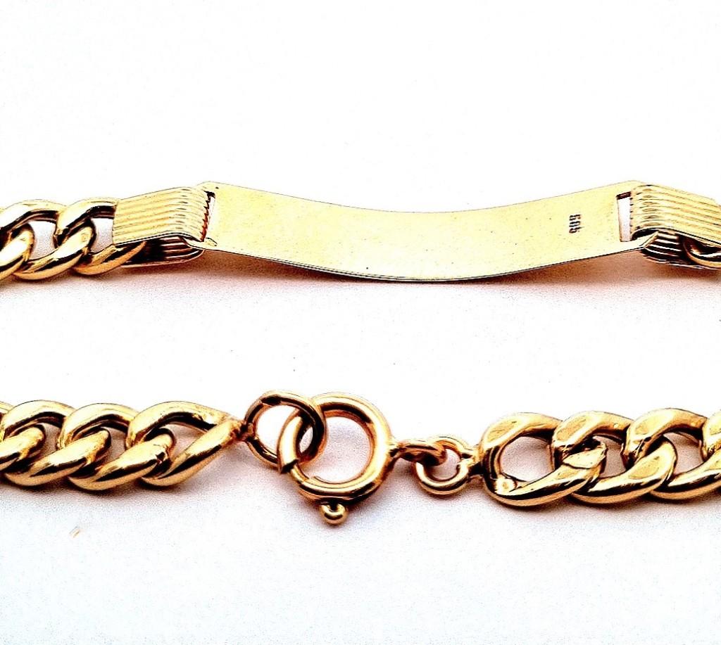 Zlatý náramek 1. republika o ryzosti 585/1000, punc labuť , váha 9,12 g, celková délka 21 cm, šířka 7 mm.
