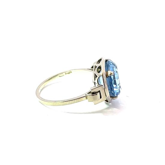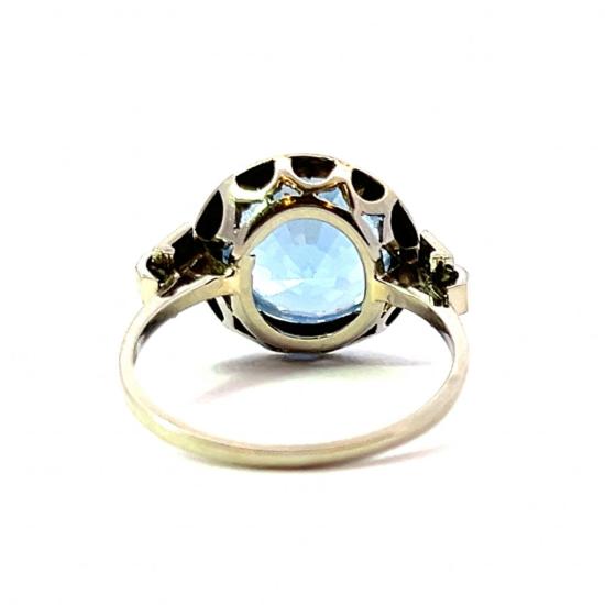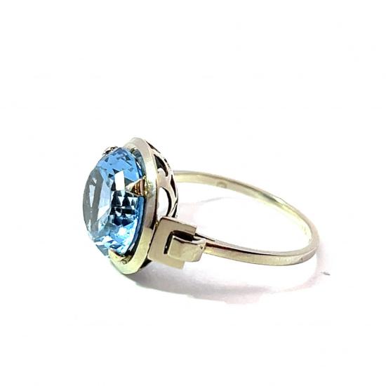 Starožitný zlatý prsten s akvamarínem, první republika, vel. 54