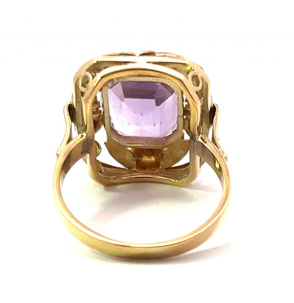 Starožitný zlatý prsten s ametystem, vel. 56