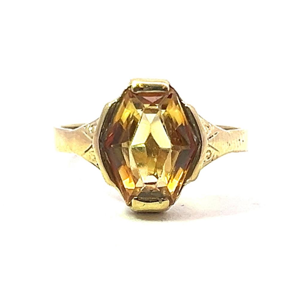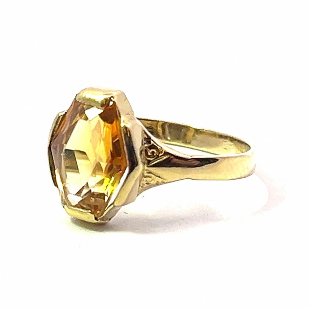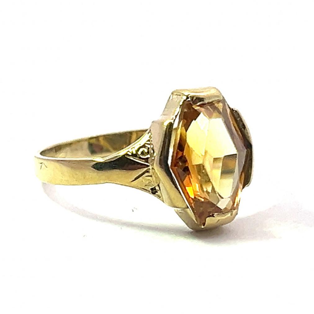 Starožitný zlatý prsten s citrínem, vel. 52