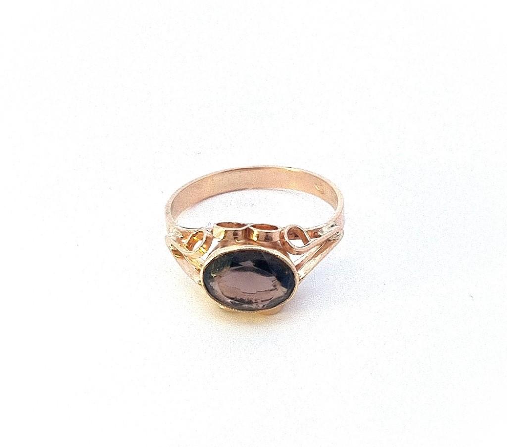 Starožitný zlatý prsten s fialovým kamenem - ametyst, vel. 53,5