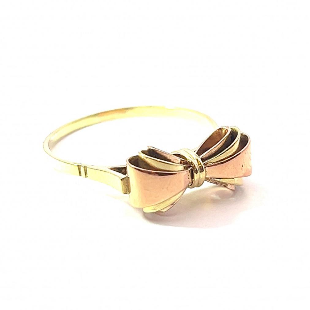 Starožitný zlatý prsten s mašličkou, vel. 62