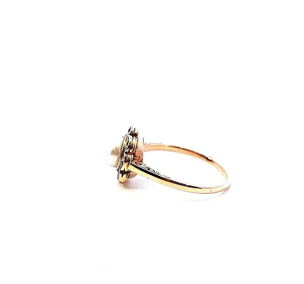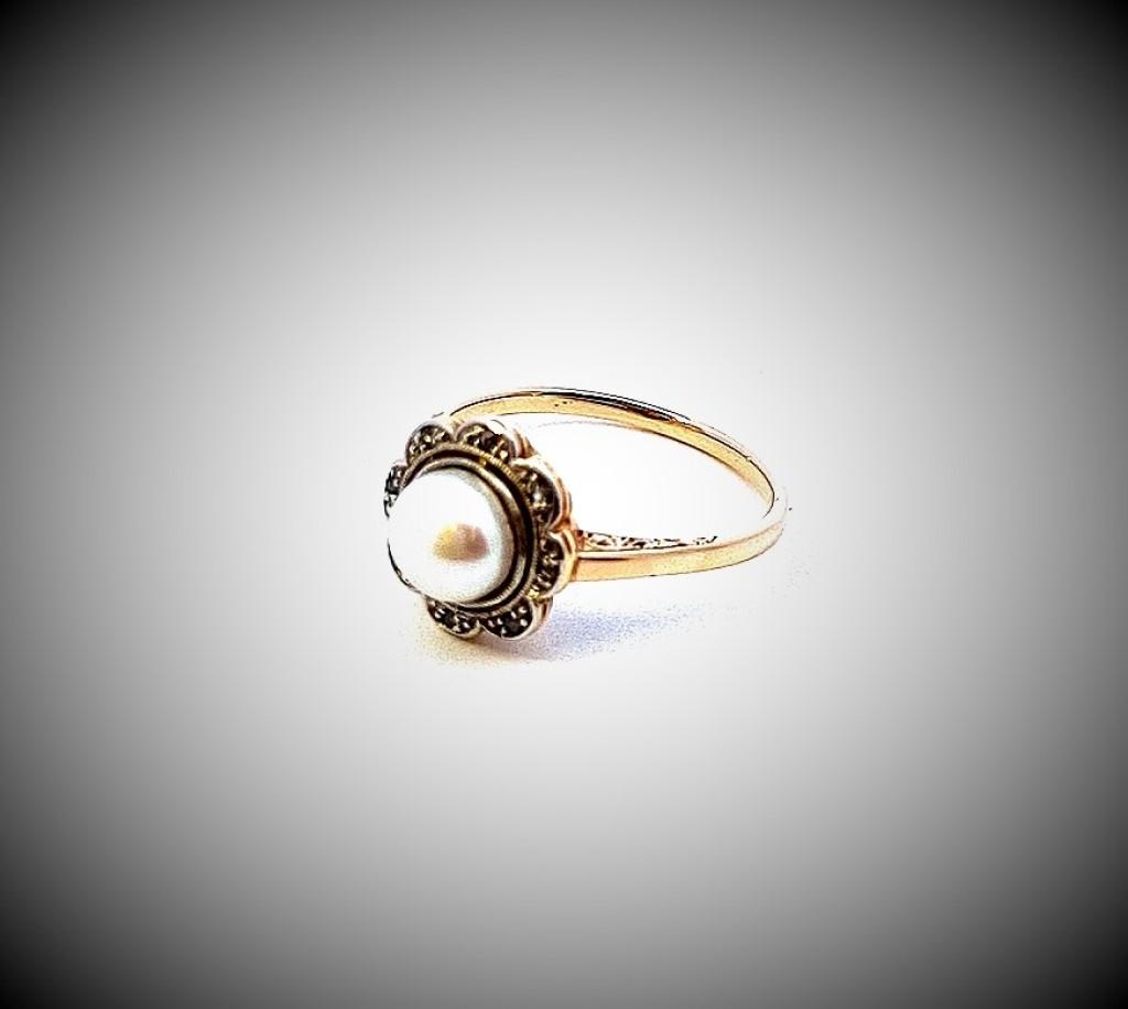 Starožitný zlatý prsten s perlou a diamanty, vel. 54