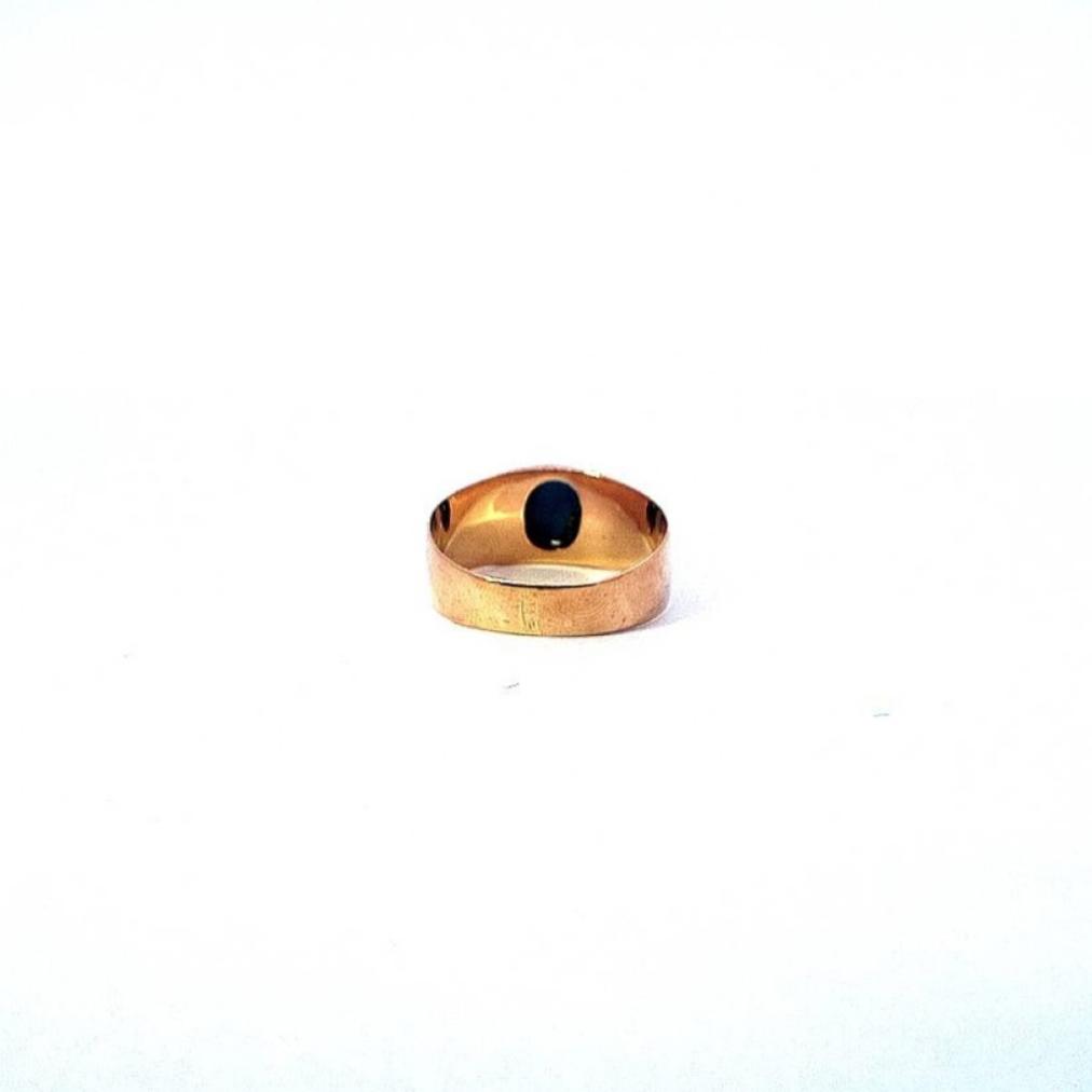 Zlatý prsten o ryzosti 585/1000, punc liška. Velikost 58, váha 3,77 g, v nejširším bodě 9 mm, rozměr kamene 7 x 5 mm.