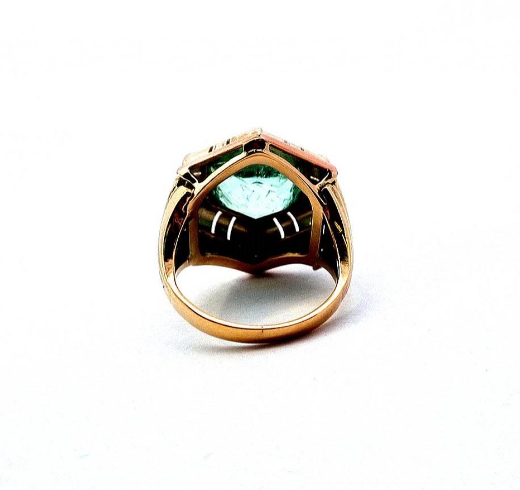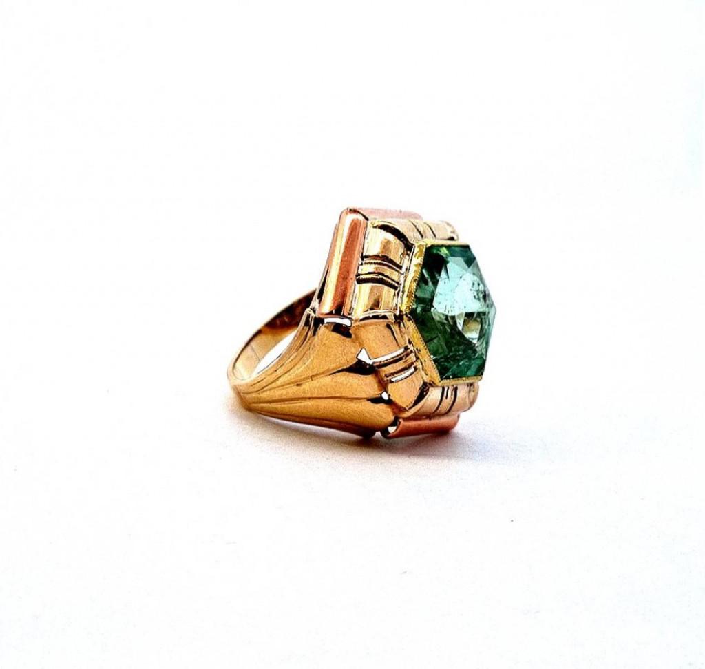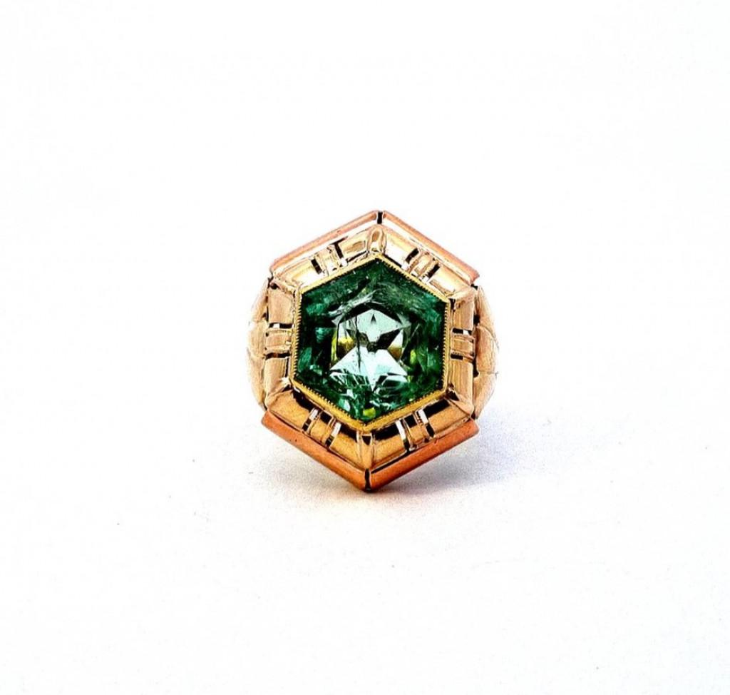Starožitný zlatý prsten se zeleným kamenem, 1. republika, vel. 52