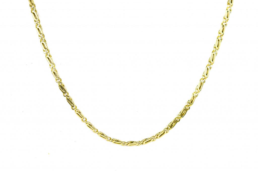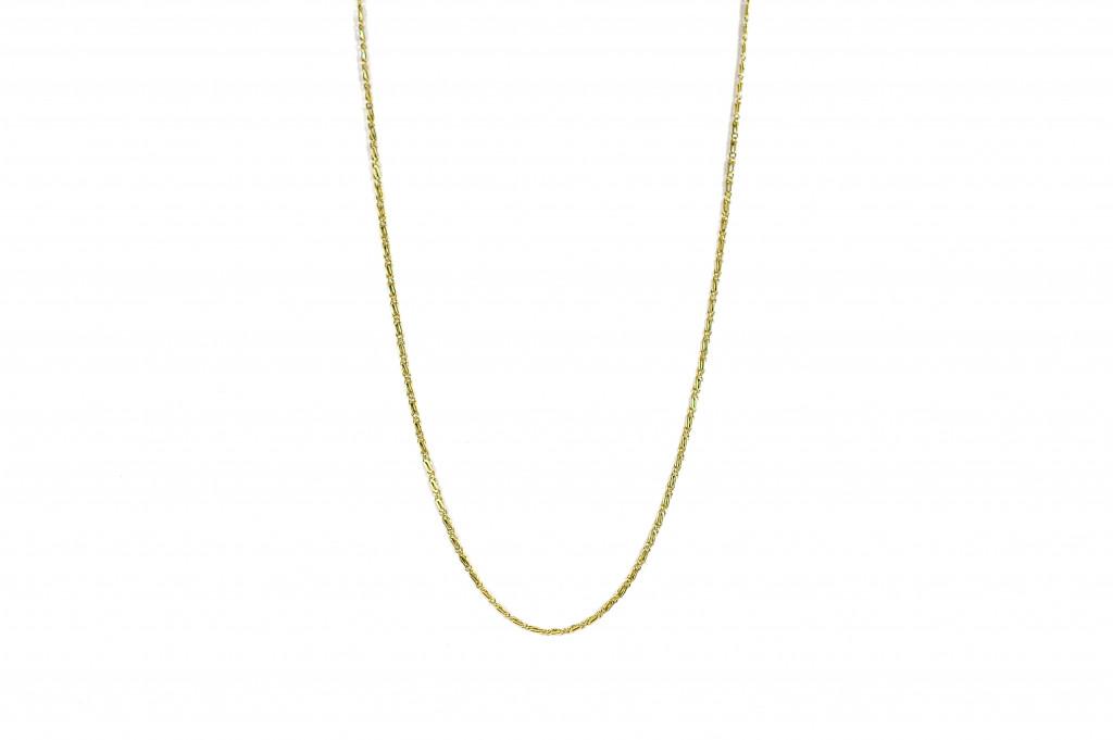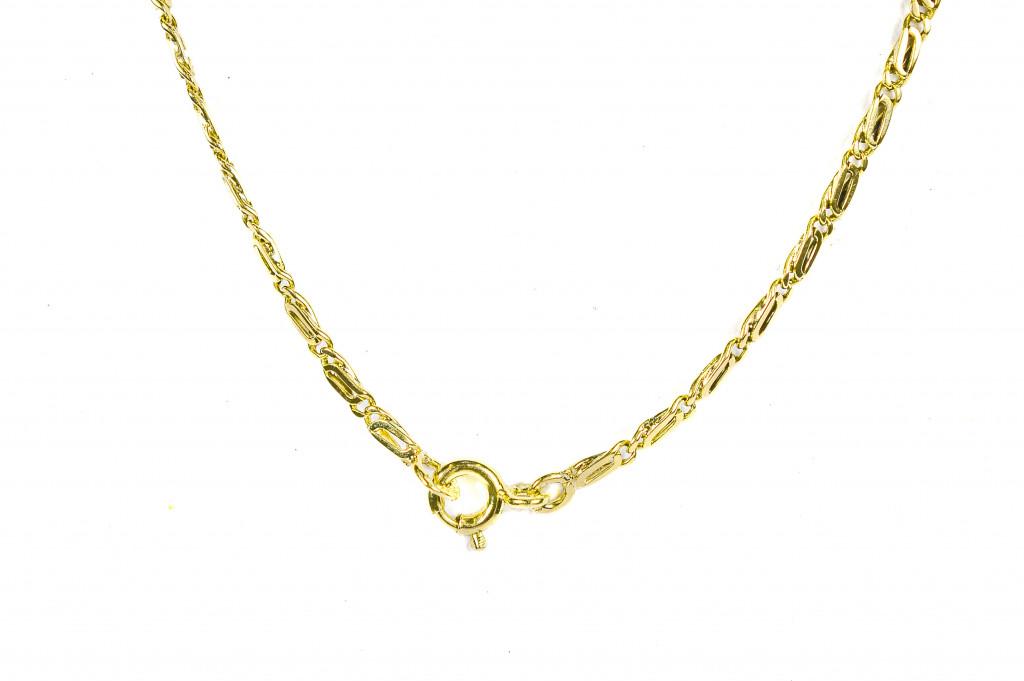 Zlatý řetízek o ryzosti 585/1000, punc lvíček. Váha 3,15 g, délka 45 cm, šířka 2 mm.