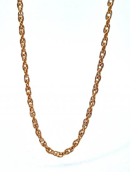 Zlatý řetízek se zdvojenými očky o ryzosti 585/1000 s puncem lyra. Váha řetízku je 7,84 g, délka 51 cm, tloušťka 2,5 mm.