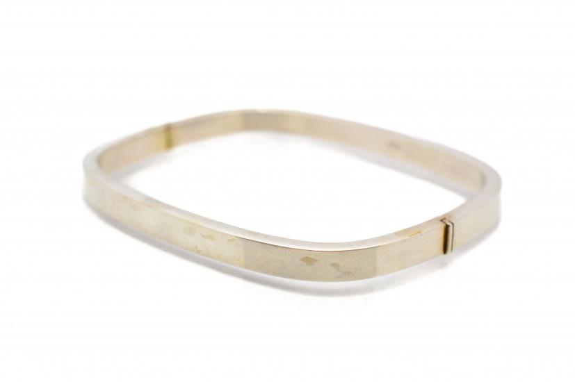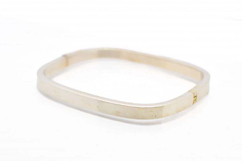 Stříbrný náramek o ryzosti 925/1000, punc kamzík. Váha 11,66 g, vnitřní průměr 60 mm, šířka 5 mm.