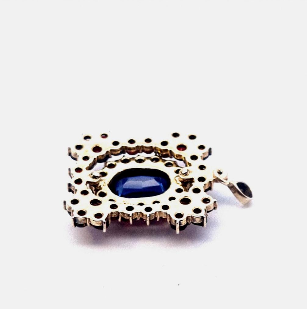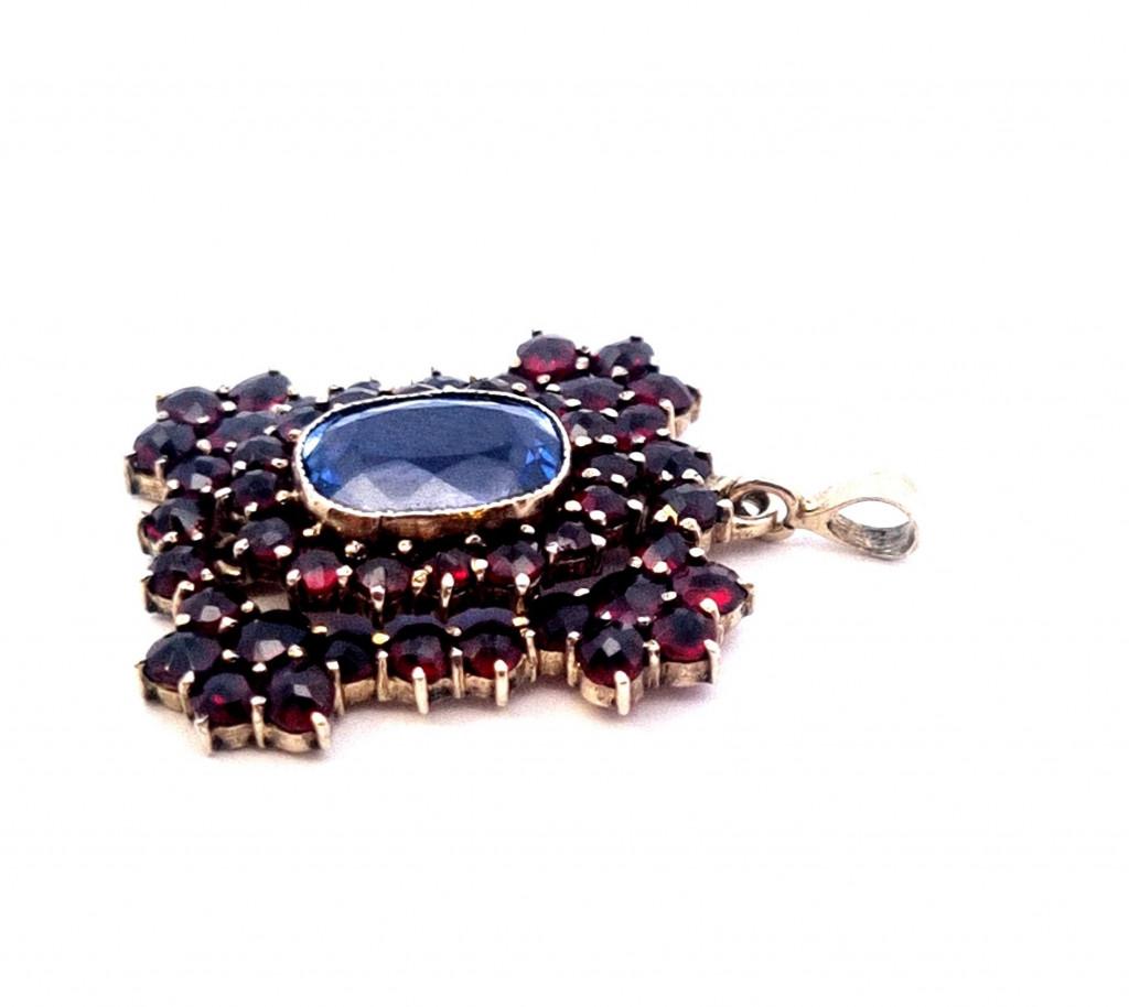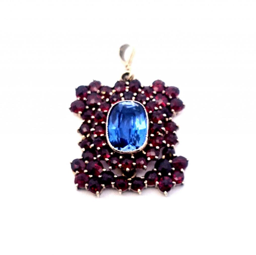 Stříbrný přívěs o ryzosti 900/1000, punc zajíc. Váha 5,17 g, výška včetně očka 34 mm, v nejširším bodě 23 mm. Akvamarín je syntetický.