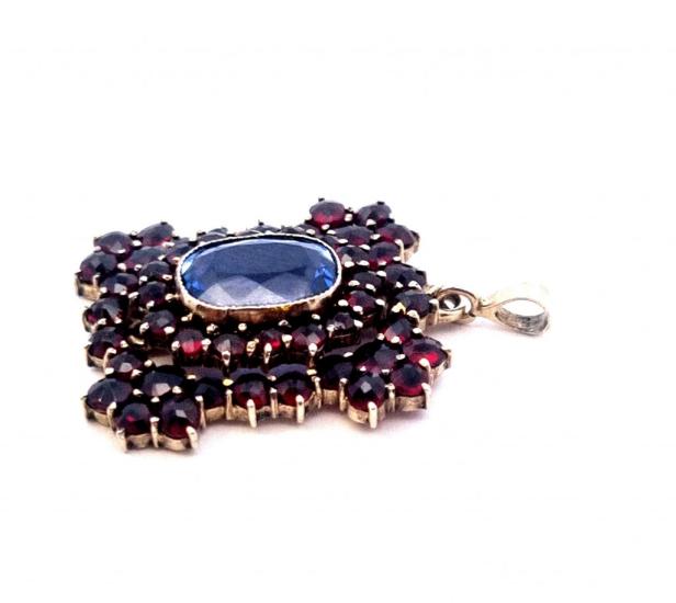 Stříbrný přívěs s českými granáty a akvamarínem