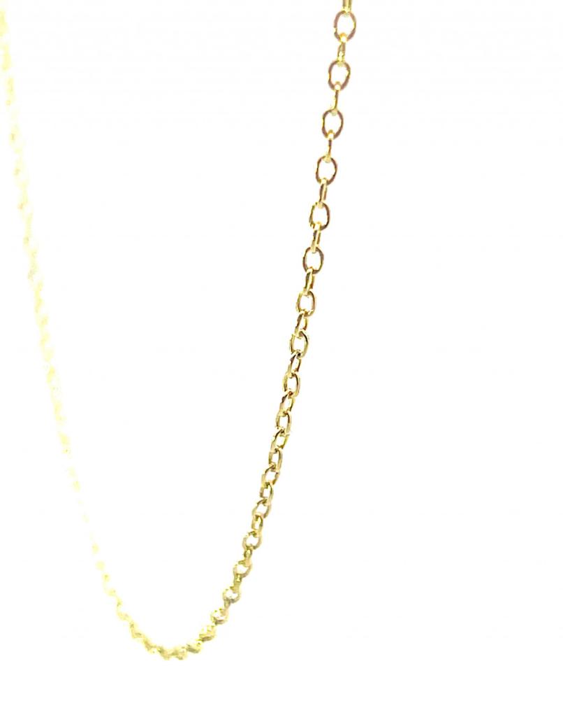 Jemňoučký řetízek ze žlutého zlata o ryzosti 585/1000 s puncem čejky. Jeho délka je 51 cm a jeho váha je 1,73 g.