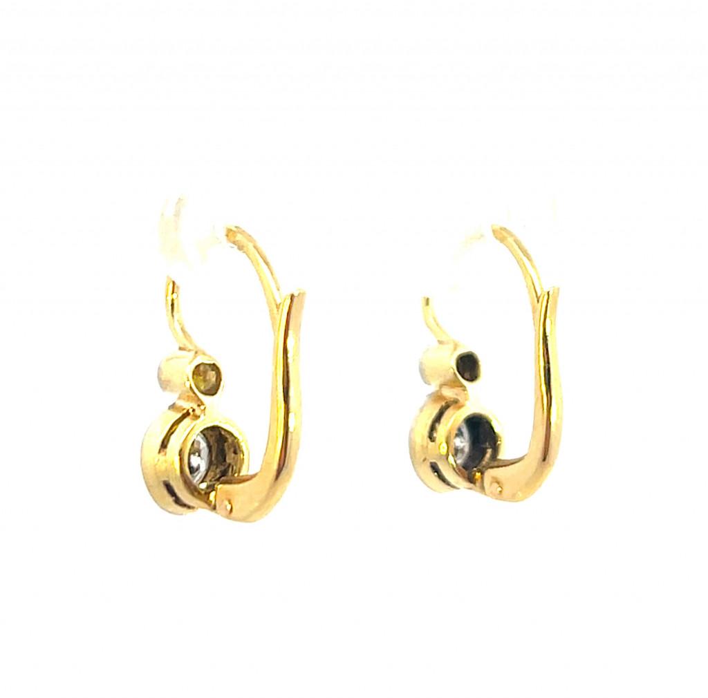 Zlaté starožitné náušnice v kombinaci žlutého a bílého zlata s brilianty