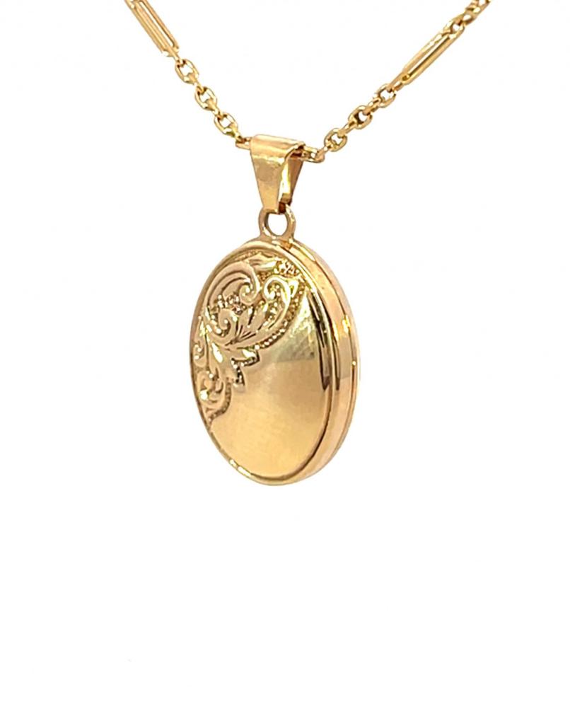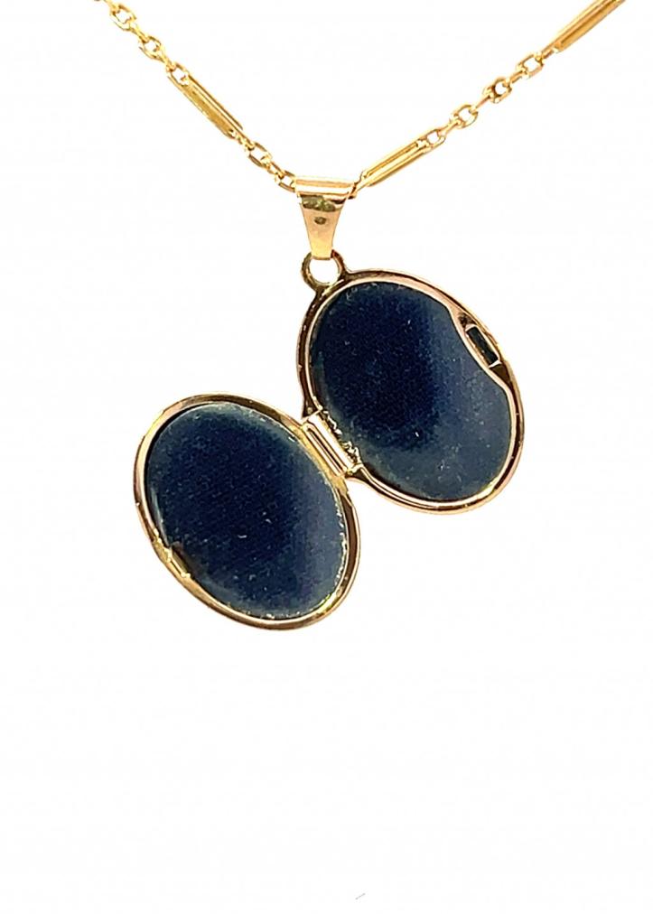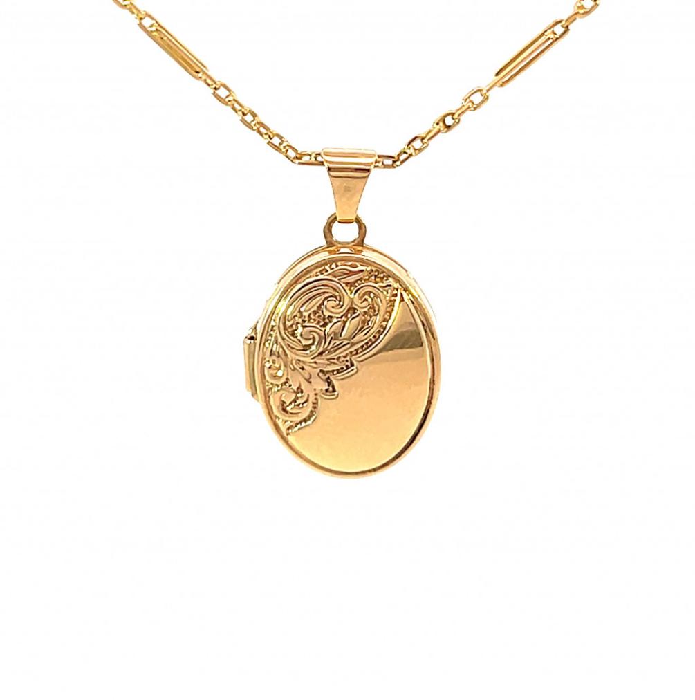 Zlatý medailon o ryzosti 375/1000, platná puncovní značka. Váha 1,15 g, výška včetně očka 24 mm, v nejširším bodě 14 mm. Řetízek není součástí nabídky.