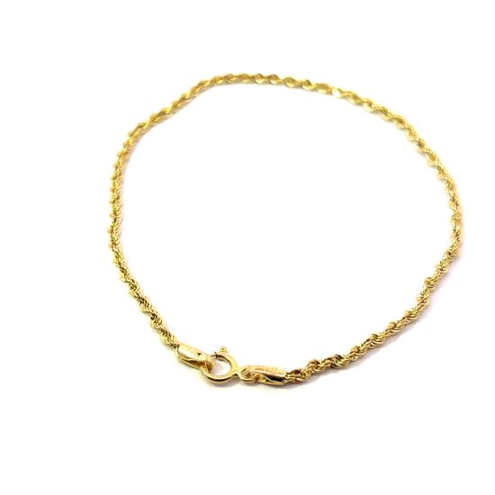 Zlatý náramek o ryzosti 585/1000, punc labuť. Váha 1,27 g, délka 20,7 cm, v nejširším bodě 2 mm.